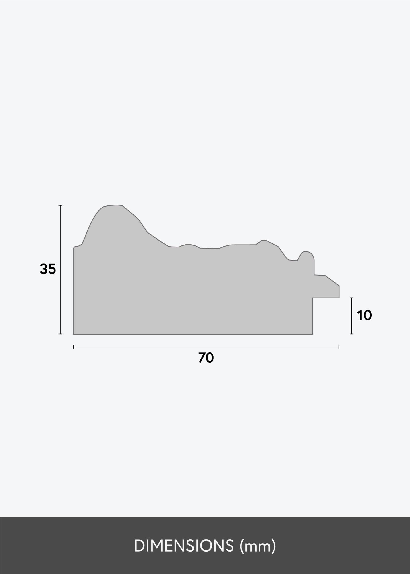 Durham Oro ha un'impressionante lista di cornici larga 70 mm che offre una cornice potente, mentre la profondità della cornice di 35 mm crea un profilo distintivo e accattivante sulla parete. Realizzata in pino di alta qualità, questa cornice offre sia durata che stile.