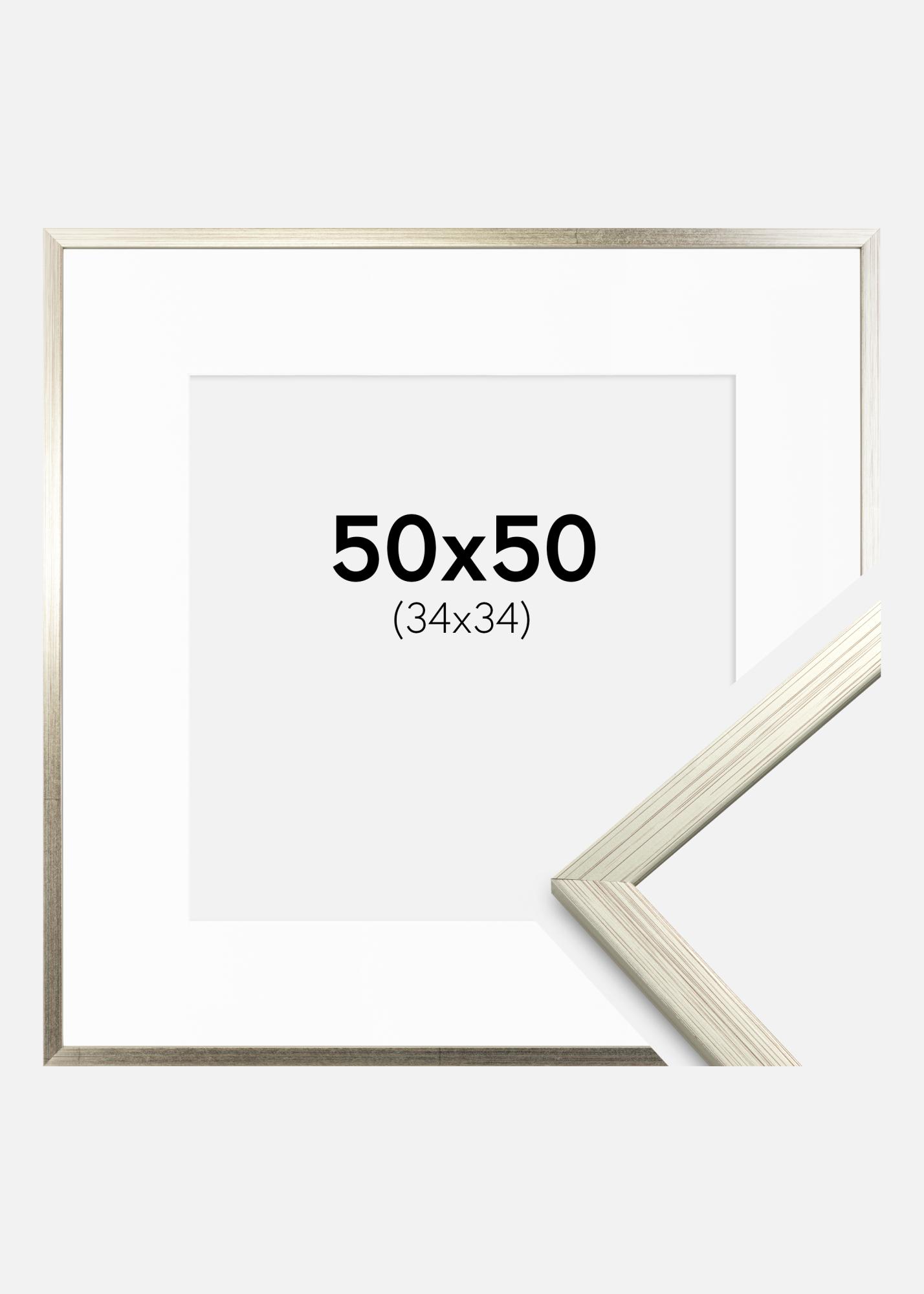 Cornice Edsbyn Argento 50x50 cm - Passe-partout Bianco 35x35 cm