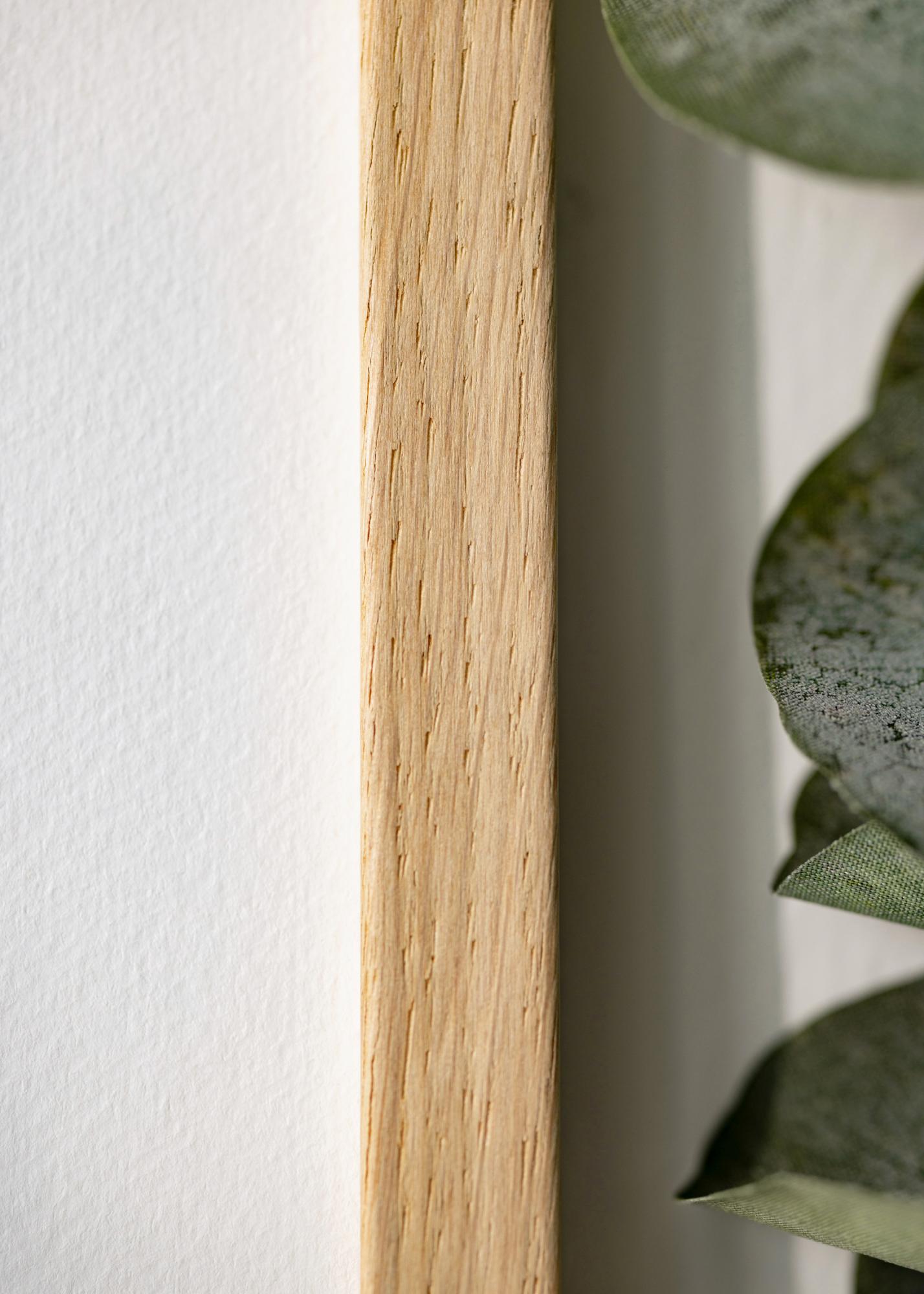 A volte ci viene chiesto perché la cornice è fatta di rivestimento in rovere e non di vero rovere se si tratta di una cornice di qualità. La ragione di ciò è che è difficile ottenere una superficie controllata quando si tratta di vero rovere, poiché spesso ci sono variazioni di colore in diverse parti del legno, che in alcuni contesti possono essere adatte. Ma su una cornice, rischia solo di sembrare che alcune parti della cornice siano scolorite.