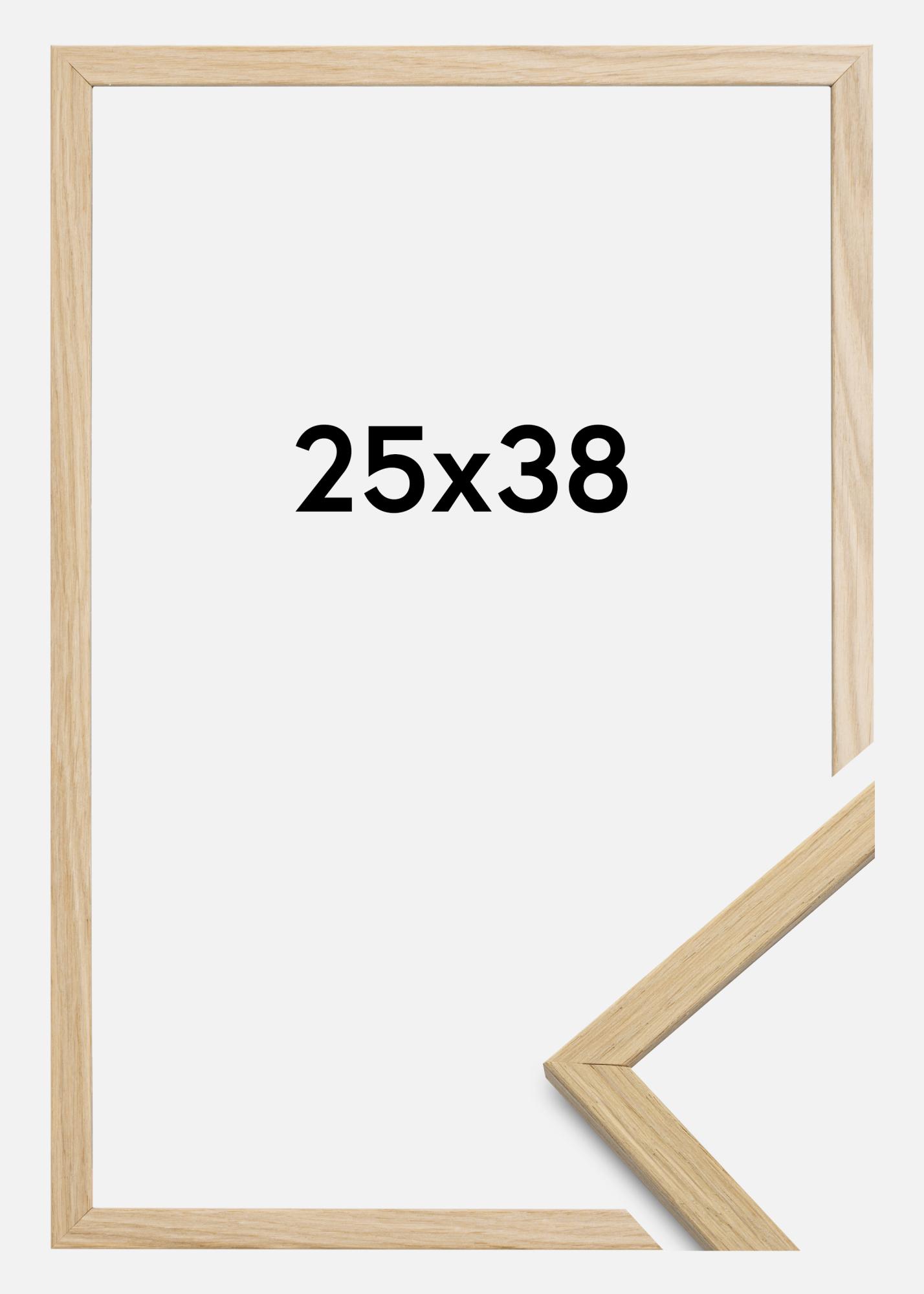 A volte ci viene chiesto perché la cornice è fatta di rivestimento in rovere e non di vero rovere se si tratta di una cornice di qualità. La ragione di ciò è che è difficile ottenere una superficie controllata quando si tratta di vero rovere, poiché spesso ci sono variazioni di colore in diverse parti del legno, che in alcuni contesti possono essere adatte. Ma su una cornice, rischia solo di sembrare che alcune parti della cornice siano scolorite.