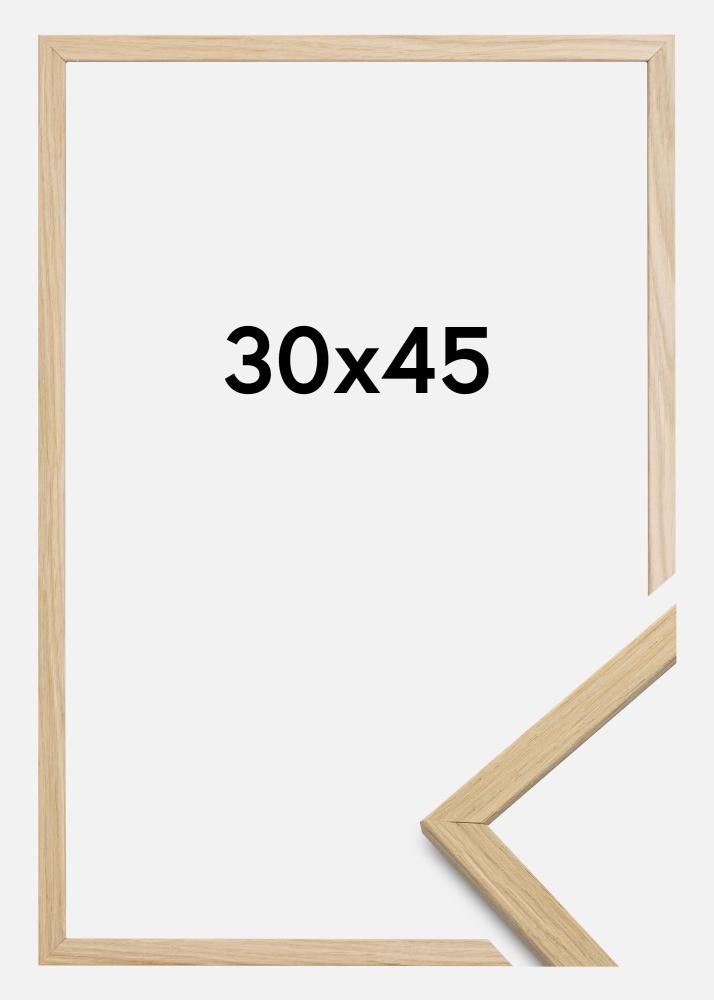 A volte ci viene chiesto perché la cornice è fatta di rivestimento in rovere e non di vero rovere se si tratta di una cornice di qualità. La ragione di ciò è che è difficile ottenere una superficie controllata quando si tratta di vero rovere, poiché spesso ci sono variazioni di colore in diverse parti del legno, che in alcuni contesti possono essere adatte. Ma su una cornice, rischia solo di sembrare che alcune parti della cornice siano scolorite.