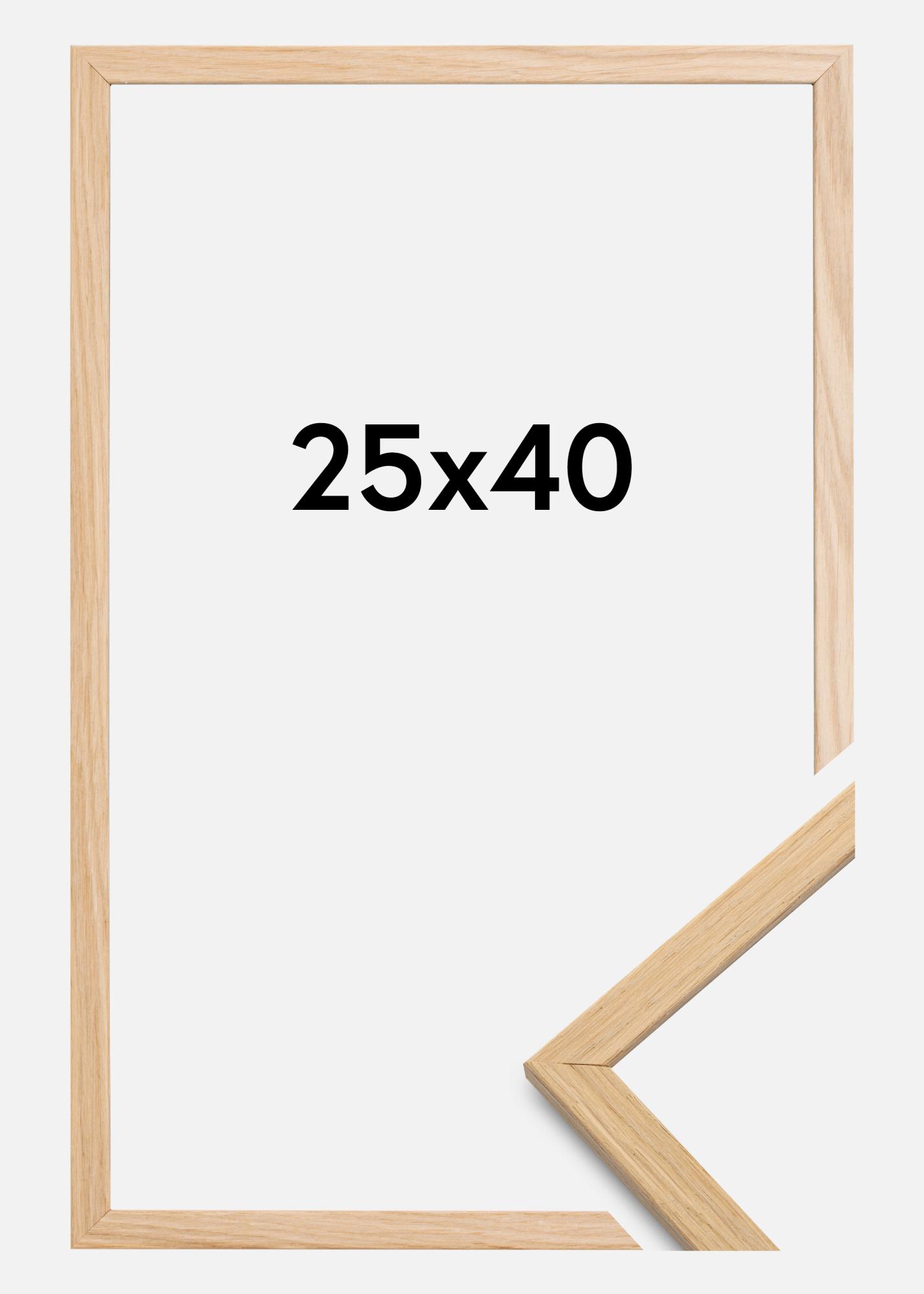 A volte ci viene chiesto perché la cornice è fatta di rivestimento in rovere e non di vero rovere se si tratta di una cornice di qualità. La ragione di ciò è che è difficile ottenere una superficie controllata quando si tratta di vero rovere, poiché spesso ci sono variazioni di colore in diverse parti del legno, che in alcuni contesti possono essere adatte. Ma su una cornice, rischia solo di sembrare che alcune parti della cornice siano scolorite.