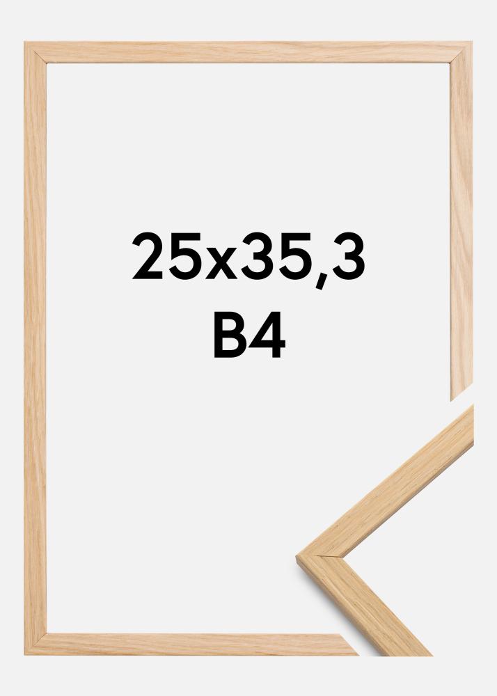 A volte ci viene chiesto perché la cornice è fatta di rivestimento in rovere e non di vero rovere se si tratta di una cornice di qualità. La ragione di ciò è che è difficile ottenere una superficie controllata quando si tratta di vero rovere, poiché spesso ci sono variazioni di colore in diverse parti del legno, che in alcuni contesti possono essere adatte. Ma su una cornice, rischia solo di sembrare che alcune parti della cornice siano scolorite.