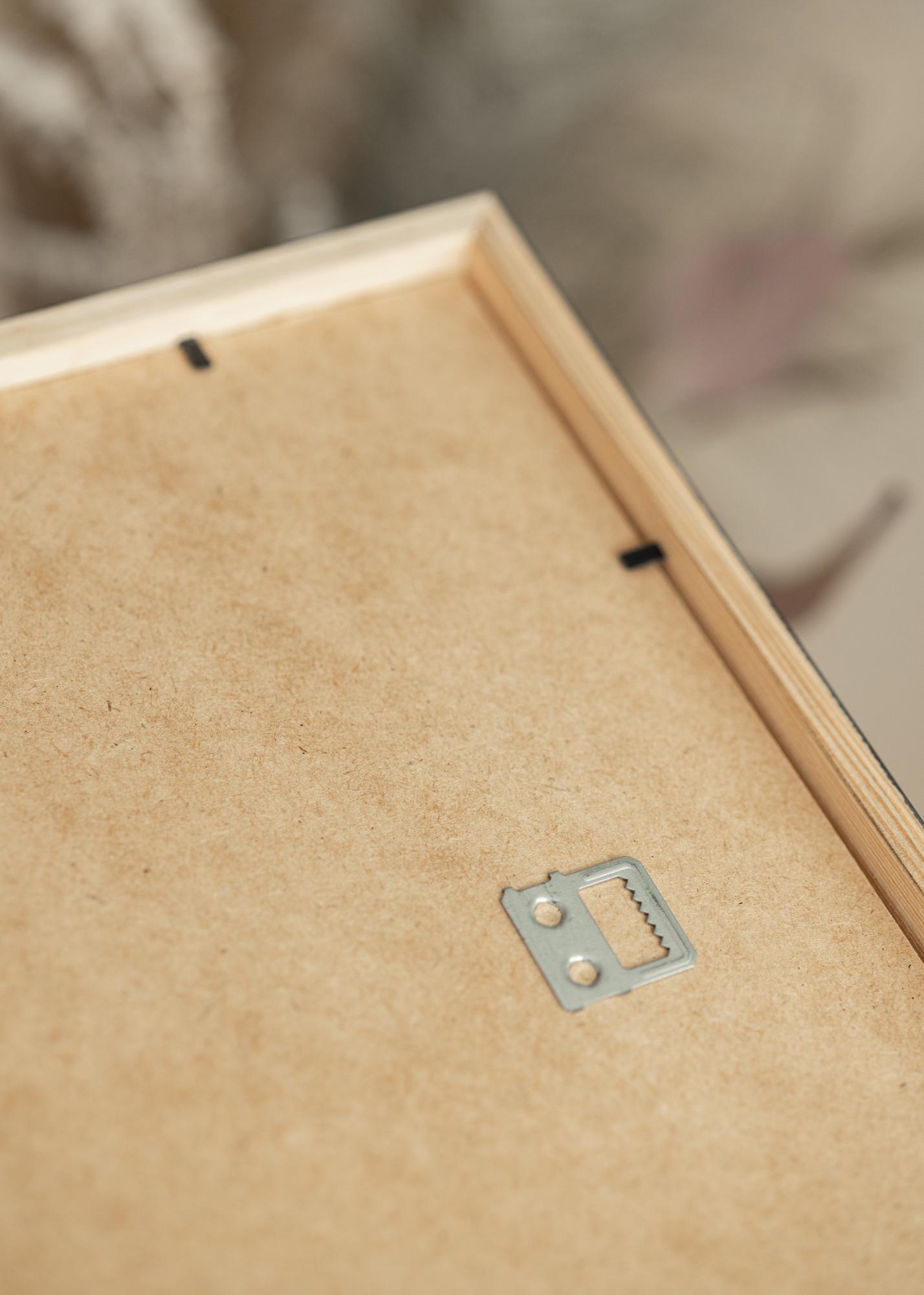 Una cornice nera è sia elegante che flessibile - infatti, la tonalità nera è facile da abbinare a tutti i tipi di motivi! Che tu stia incorniciando foto di matrimonio o disegni dei bambini, questa cornice di qualità in pino verniciato è una buona scelta. La cornice è dotata di vetro e ha una cornice di 12 mm di larghezza e 22 mm di profondità.