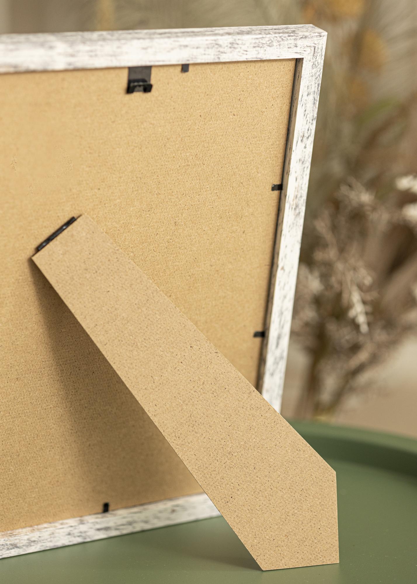 Questa cornice con un aspetto di Rovere dipinta di bianco ha un'atmosfera rustica e romantica. Una cornice con quell'aspetto decorativamente consumato che sembra essere stata presente per un po'. Il profilo ha una leggera inclinazione verso l'interno del vetro, che conferisce al tuo motivo un incorniciamento elegante ed efficace.