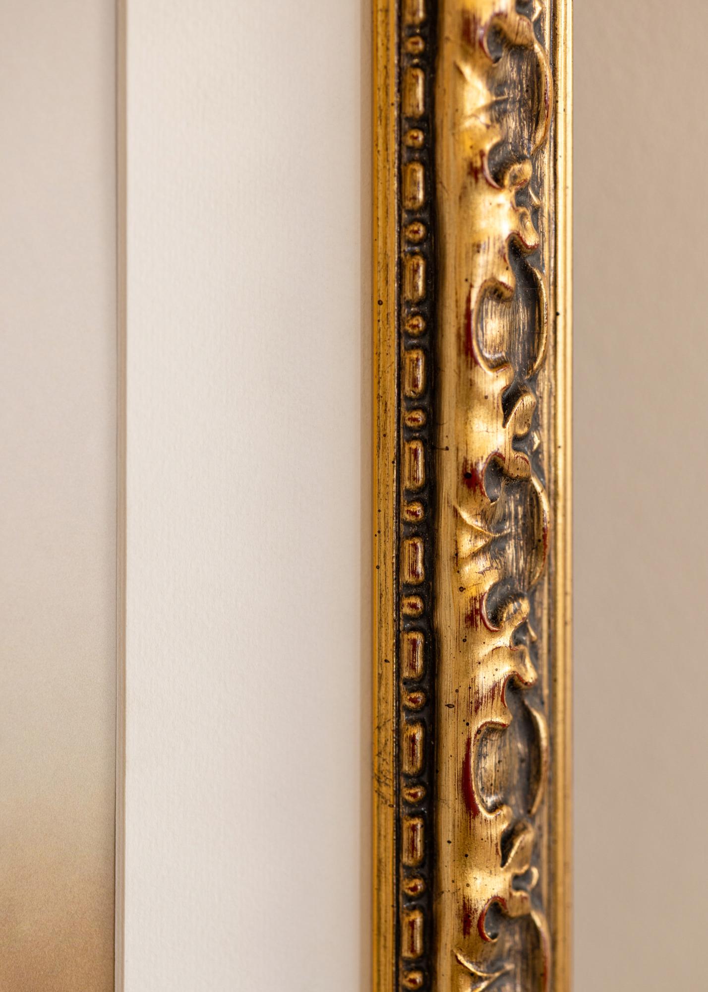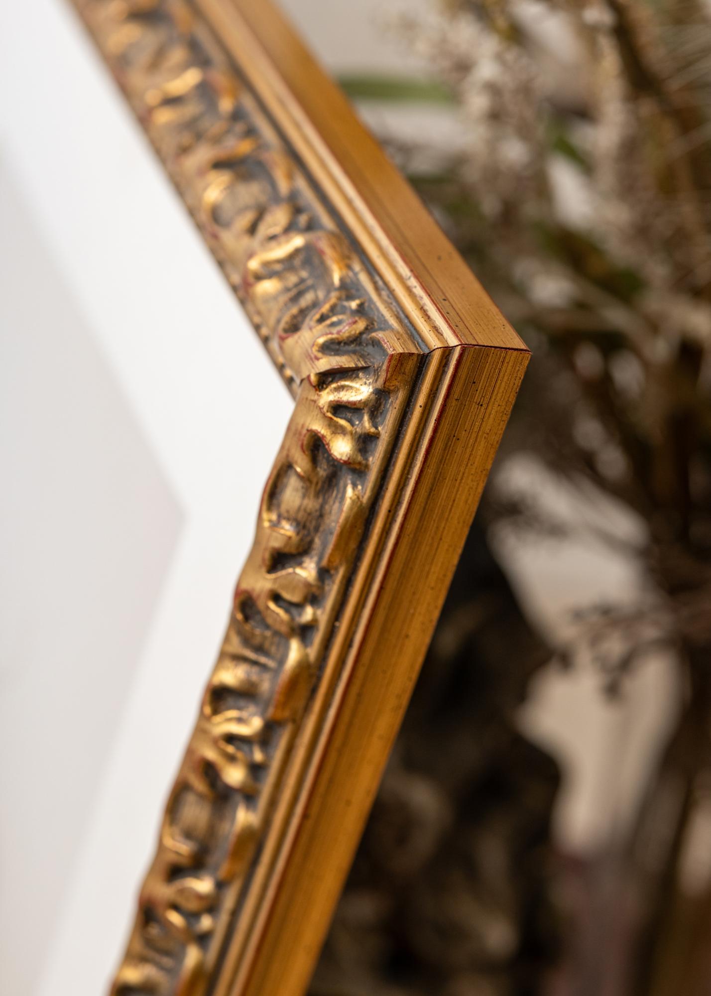 La Cornice Freyja Oro è una cornice fotografica elegante e di stile che offre alle tue immagini una cornice lussuosa. Con la sua superficie dorata e gli intricati ornamenti, diventa un elemento accattivante in qualsiasi stanza. La finitura antica, con dettagli patinati scuri e sottili accenni rossi, accentua il carattere rustico della cornice e le conferisce un fascino senza tempo.