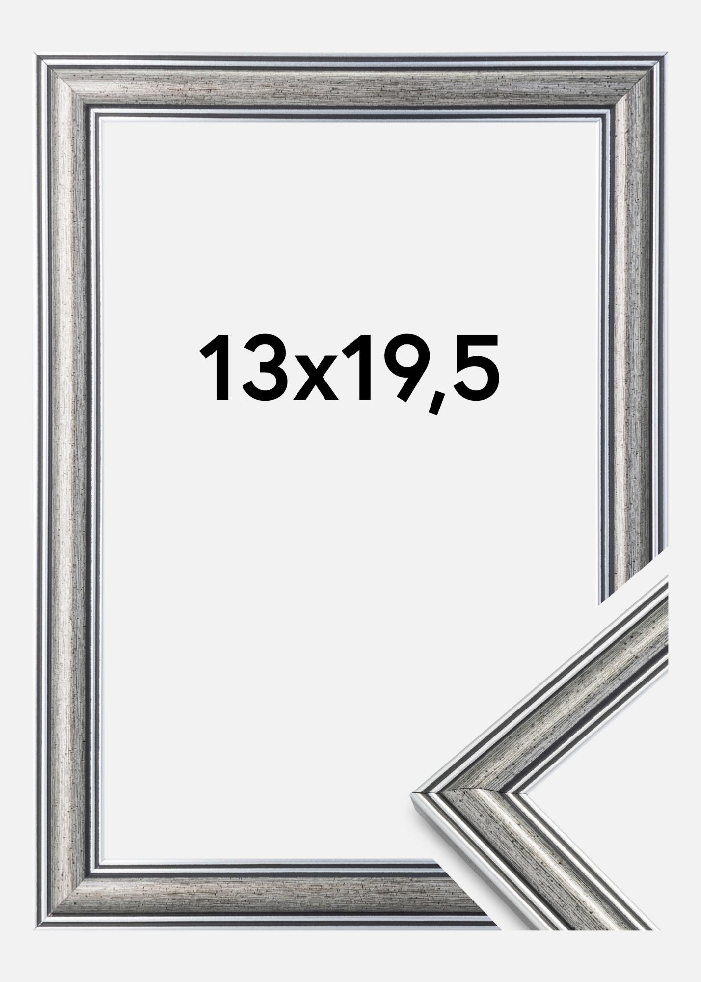 Frigg è una cornice d'argento con linee nere e sfumature nere. È perfetta quando cerchi una cornice d'argento tradizionale e ampia che si adatta a molti tipi di immagini e ambienti.