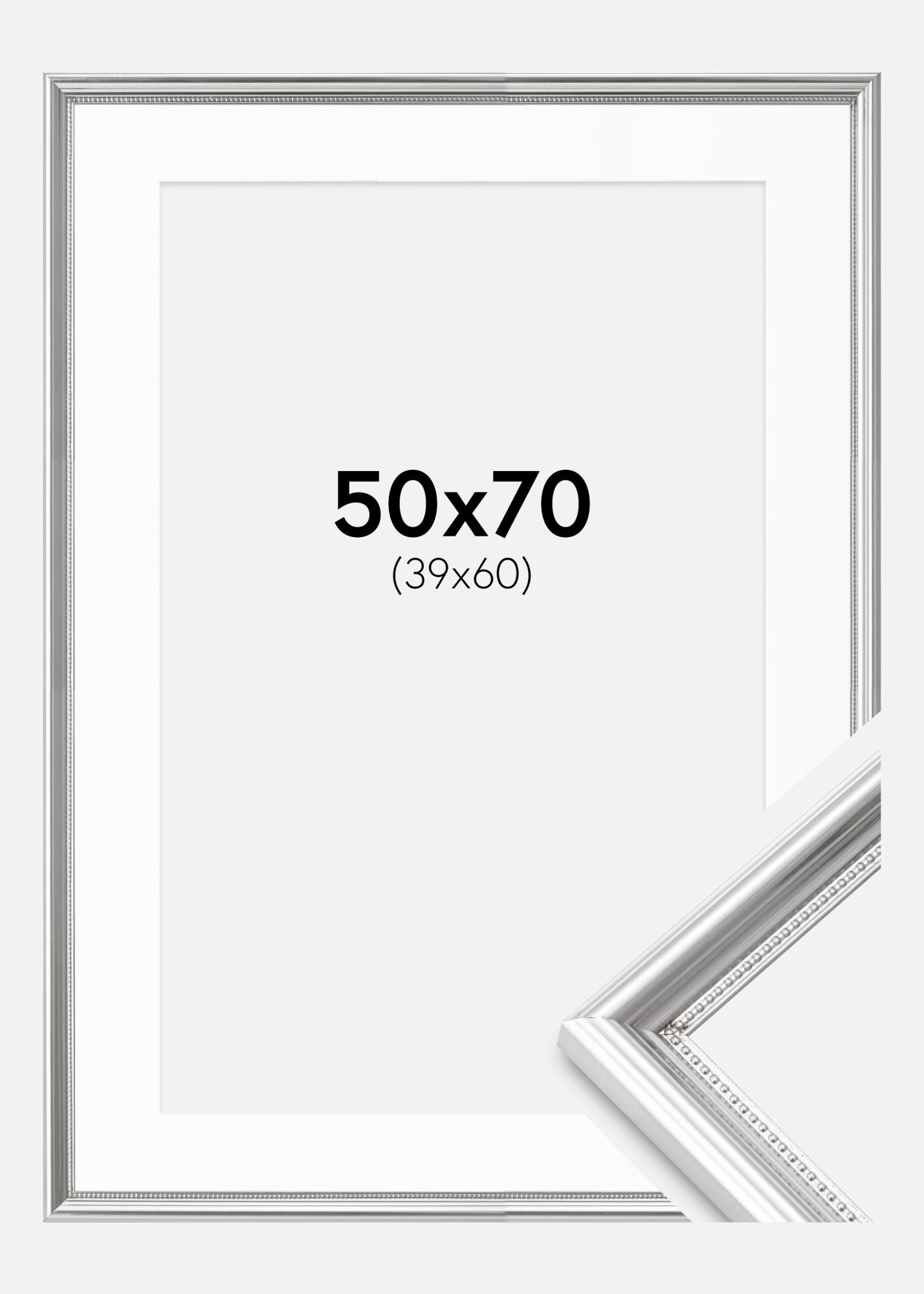 Trasforma le tue immagini in opere d'arte con la nostra elegante cornice argentata, completa di un passepartout bianco. Questa cornice è perfetta per mettere in evidenza le tue immagini preferite della dimensione di 40x61 cm. Con una superficie lucida e una larghezza di 20 mm, offre un'impressione elegante e moderna che si adatta alla maggior parte delle case.