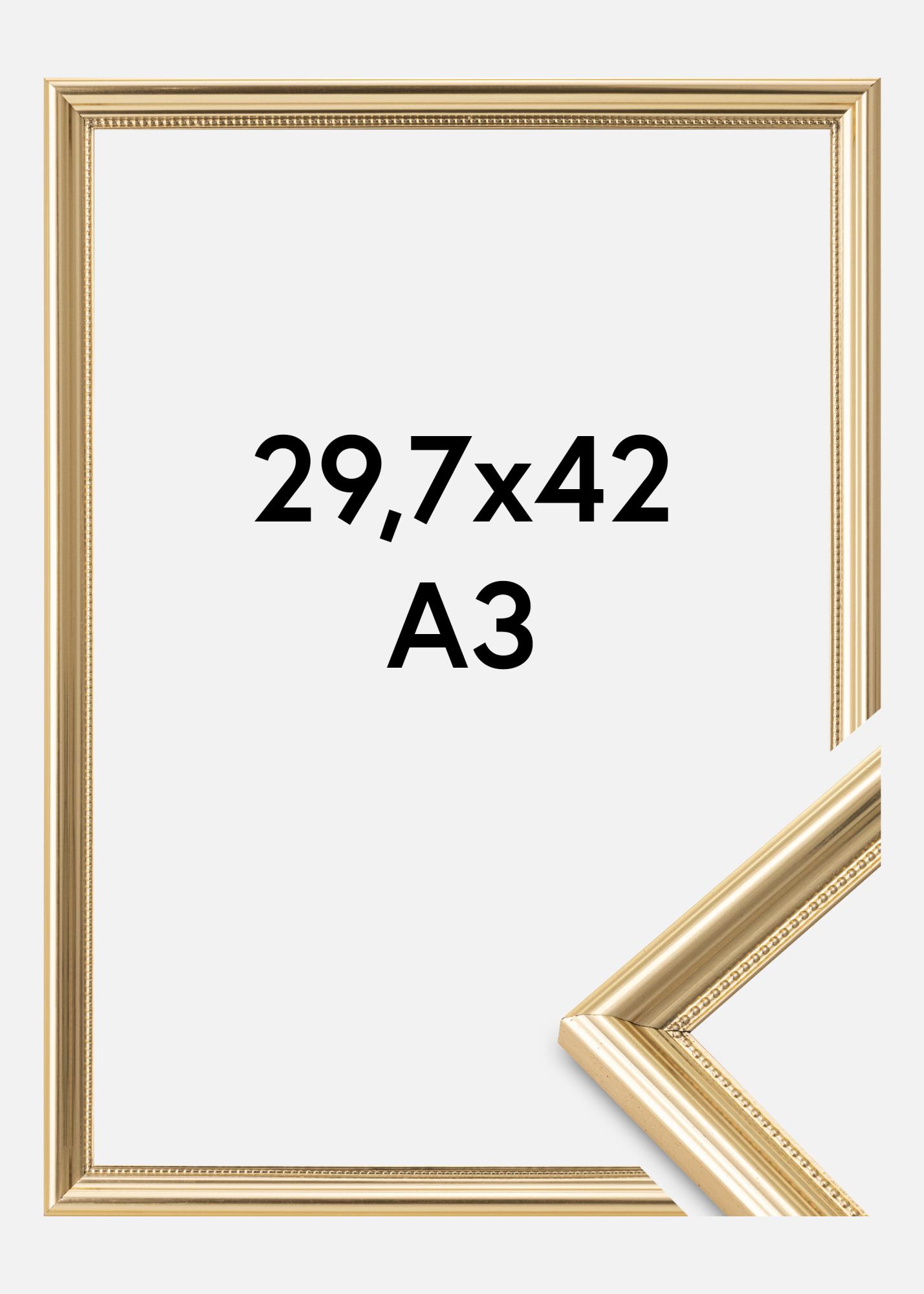 Regala le tue pareti con un tocco di eleganza con questa cornice fotografica dorata di dimensioni 29,7x42 cm (A3). Con il suo bordo a profilo in stile retrò, aggiunge un fascino classico alla tua casa. La larghezza della cornice di 20 mm e la profondità di 17 mm offrono un bordo distintivo e raffinato alle tue immagini o opere d'arte preferite.