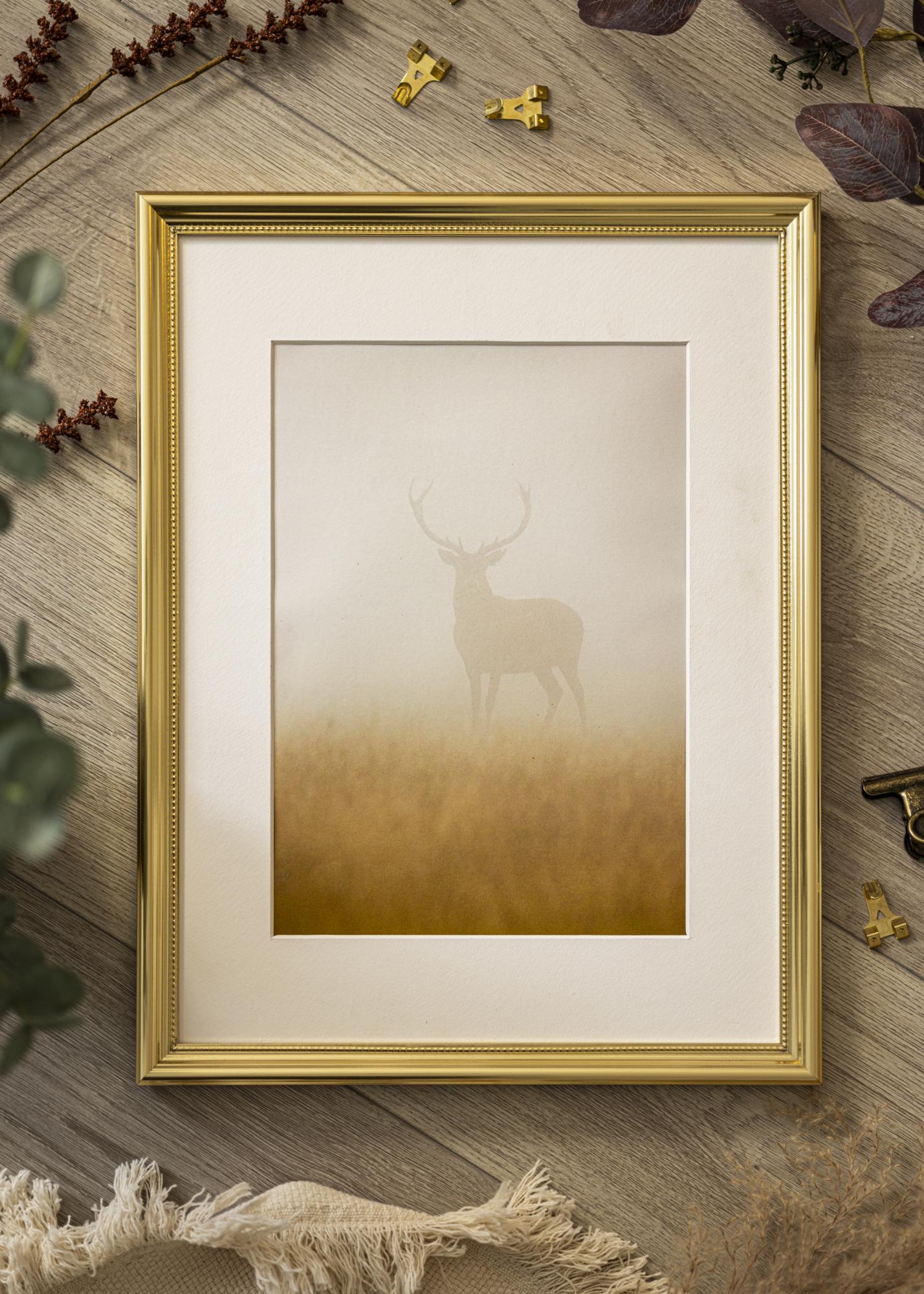 Aggiungi un tocco di eleganza alle tue pareti con questa cornice dorata nelle dimensioni di 42x59,4 cm (A2). La cornice fotografica, di color oro, ha una superficie lucida che riflette la luce in modo incantevole e conferisce una sensazione di lusso al tuo spazio. Con la sua cornice profilata di 20 mm di larghezza e una profondità di 17 mm, questa cornice per quadro offre uno stile retrò distintivo che si adatta perfettamente a interni moderni e classici.