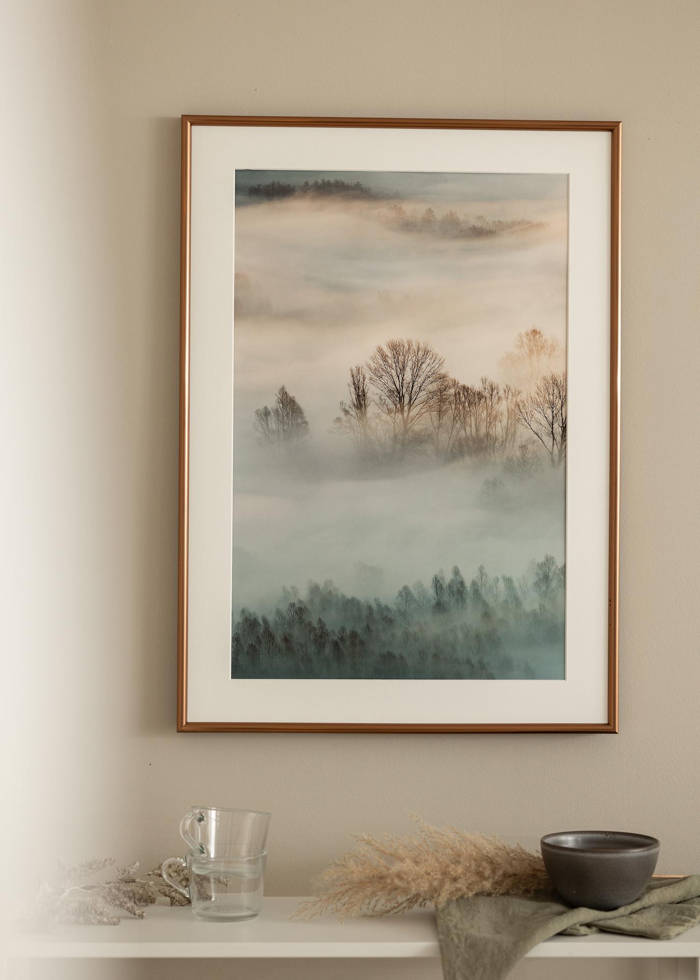 La tonalità rame della cornice si adatta perfettamente alle case con uno stile retrò, ma anche alle stanze con uno stile d'arredamento moderno o industriale. La cornice ha una profondità interna di 13,7 mm, il che ti permette di completare facilmente la tua immagine con un passe-partout del colore che preferisci. Sia l'immagine che il passe-partout si inseriscono facilmente nella cornice. Tutto ciò che devi fare è girare le clip di metallo sul retro, rimuovere il pannello posteriore e inserire ciò che desideri incorniciare.