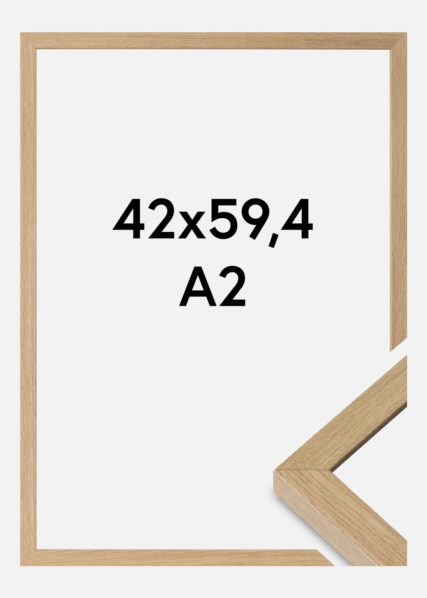 Dai ai tuoi poster e alle tue opere d'arte un tocco naturale con la nostra cornice di quercia nella dimensione 42x59,4 cm (A2). Questa elegante cornice fotografica è realizzata in resistente legno di aycistra e ha una cornice larga 19,6 mm, che conferisce un' elegante incorniciatura al tuo motivo.