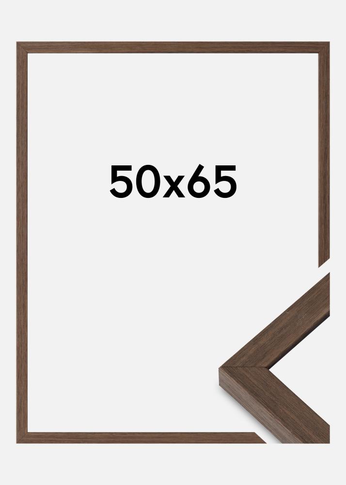 Scopri la elegante cornice per quadri delle dimensioni di 50x65 cm, perfetta per mettere in risalto le tue opere d'arte o fotografie preferite. Questa cornice per foto è realizzata in robusto legno ayos e presenta una profonda tonalità di noce che conferisce calore e accoglienza alla tua casa.