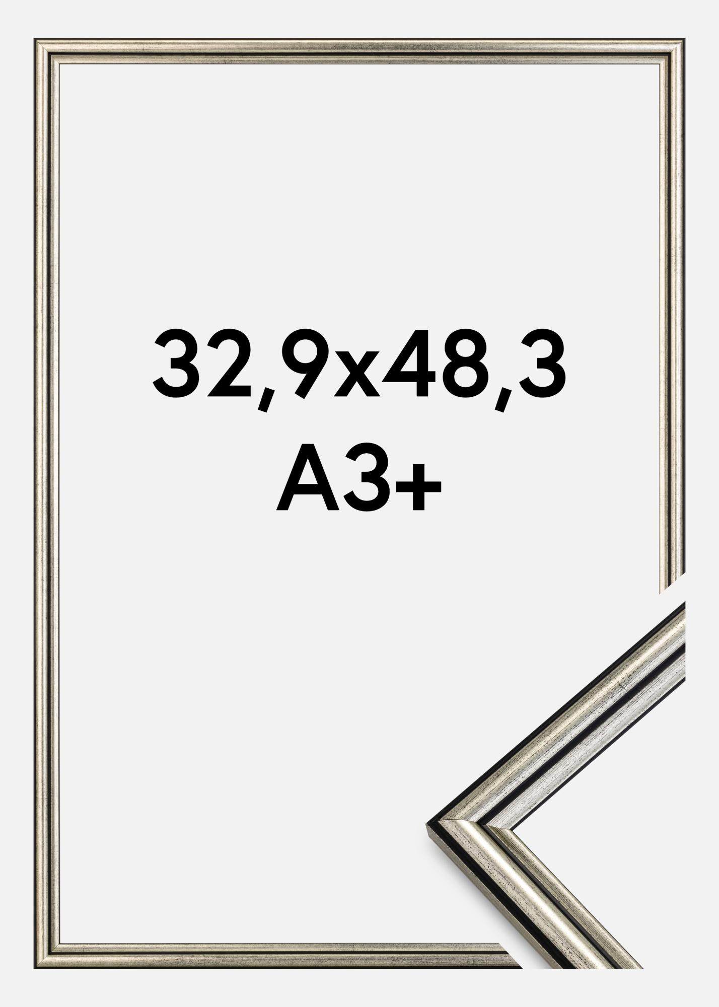 Scopri l'elegante cornice d'argento dalle dimensioni di 32,9 x 48,3 cm (A3+), una perfetta combinazione di stile e funzionalità per le tue immagini o opere d'arte preferite. Questa cornice per foto è stata appositamente progettata per dare un'impressione sofisticata con i suoi dettagli neri punteggiati e le linee nere che mettono discretamente in risalto il design della cornice.