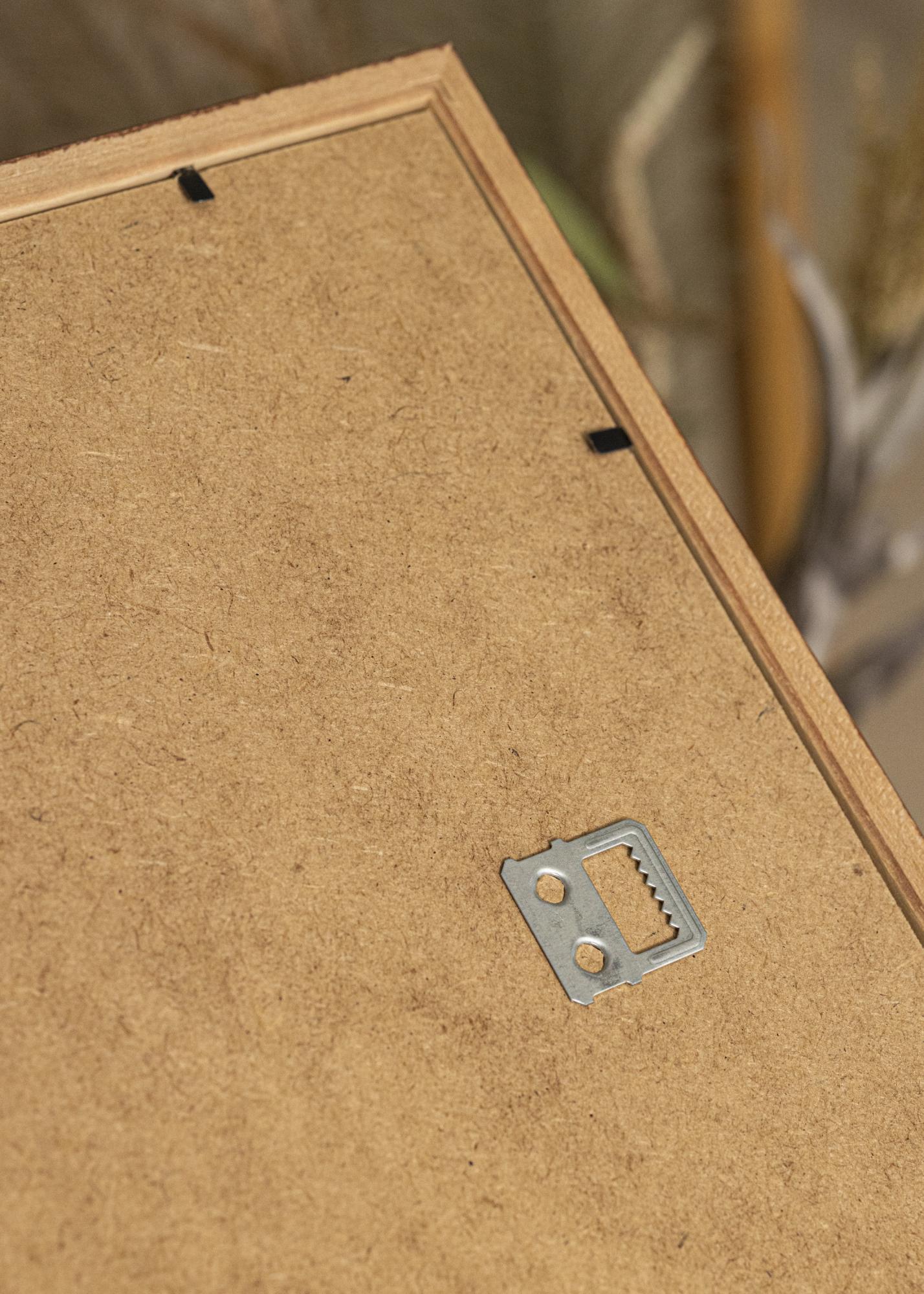 Il listello di 15 mm di larghezza in legno di ayos assicura un cornice robusta ed elegante, mentre il profilo di 14 mm di profondità contribuisce a un aspetto distintivo e attraente sulla parete. La superficie opaca della cornice completa il motivo di noce e crea una sensazione calda e accogliente nella stanza.