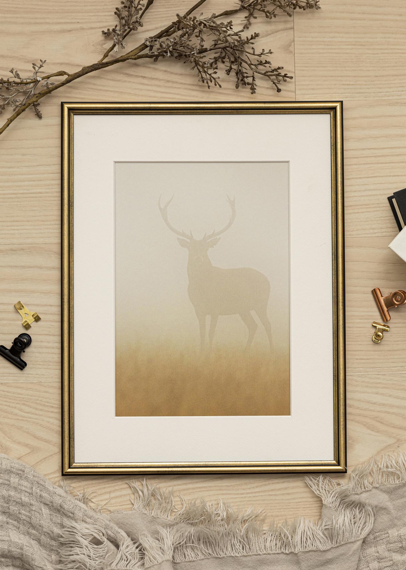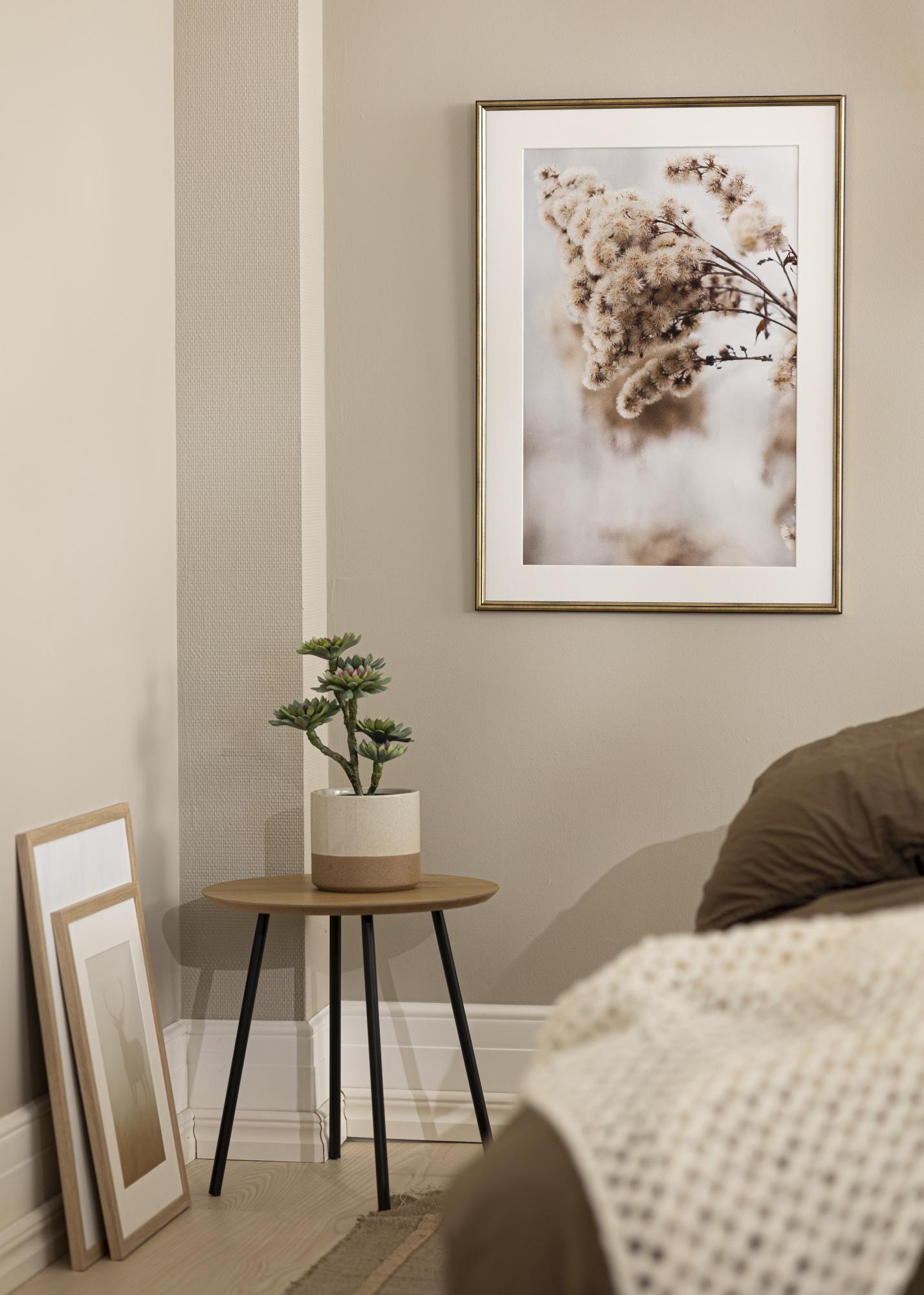 Dai alle tue immagini preferite una cornice lussuosa e ispirata al design retrò che aggiunge un tocco di eleganza alla tua casa. Horndal è una cornice prodotta in Svezia, con un colore dorato maculato di nero e una finitura opaca. La sfumatura maculata di nero conferisce alla cornice un aspetto più discreto che mette in risalto le tue immagini. Il listello è realizzato in legno di ayo dipinto e ha una larghezza sottile ed elegante di soli 15 mm.