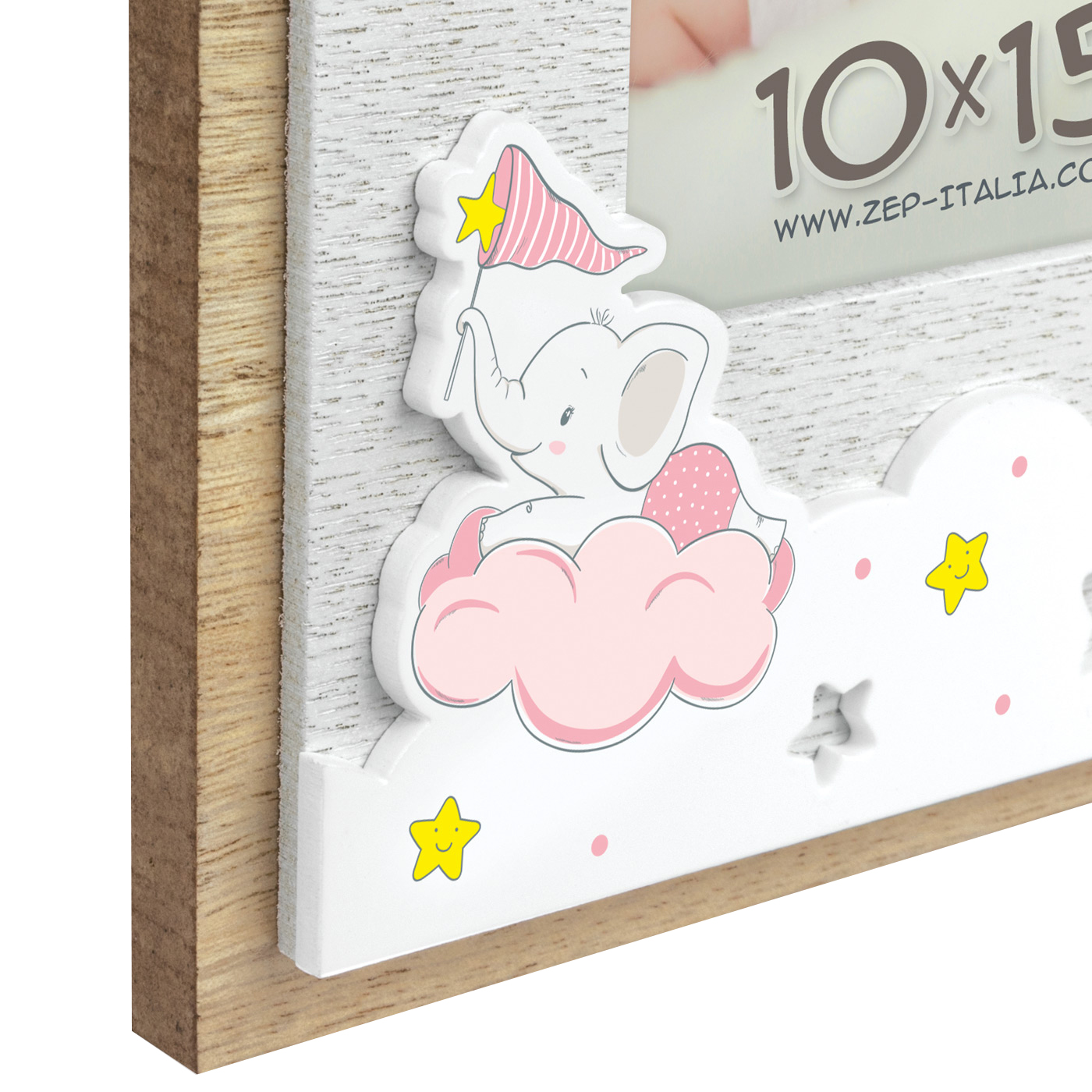 Trasforma la tua casa in una personale galleria d'arte con questa deliziosa cornice per foto che mette in risalto i piccoli momenti della vita. Con una dimensione di 10x15 cm, è perfetta per conservare i ricordi dei momenti più piccoli. Questa cornice è decorata con un adorabile tema per bambini, che include un'elefantino carino, motivi in rosa e piccole stelle che insieme creano un'atmosfera calda e amorevole.