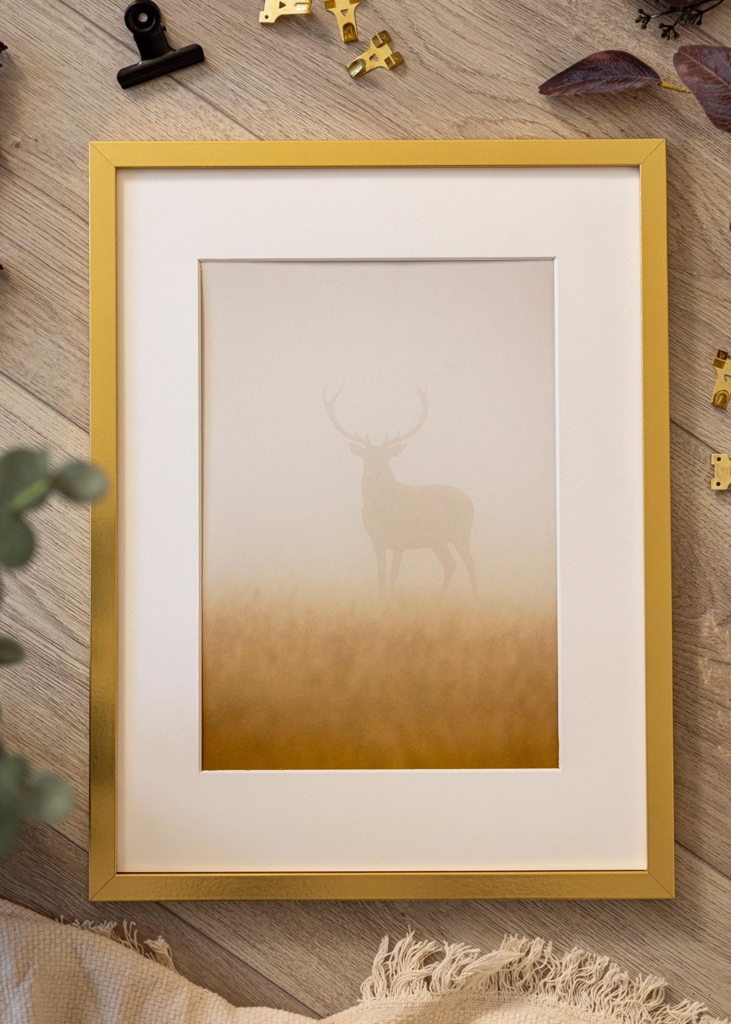 Questa elegante cornice color oro con passepartout è perfetta per evidenziare le tue immagini preferite. Con una dimensione dell'immagine di 28x38 cm e un passepartout bianco, crea una bella incorniciatura che dona al tuo soggetto maggiore profondità e attenzione.