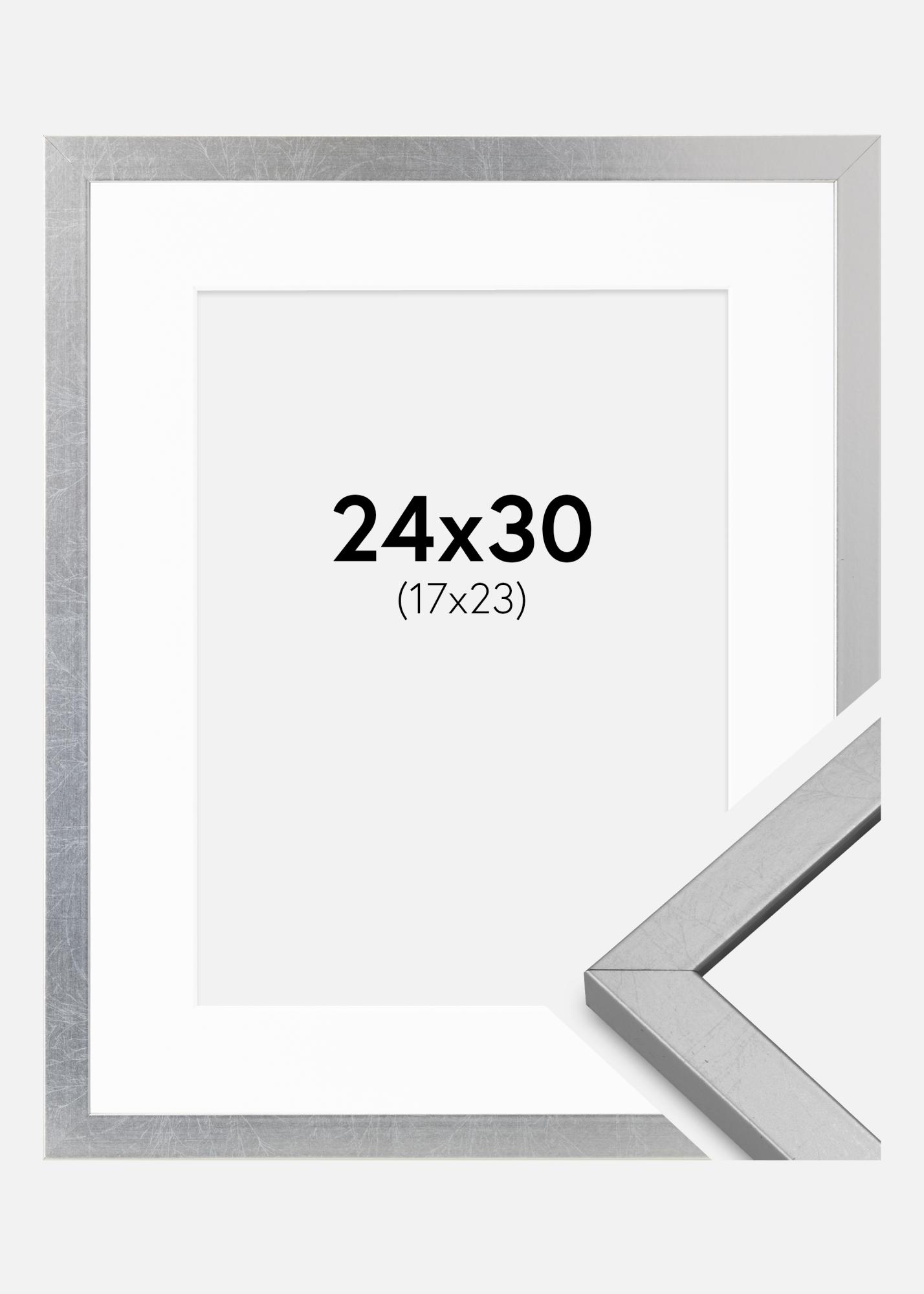 Cornice Minerva Argento 24x30 cm - passe-partout Bianco 18x24 cm