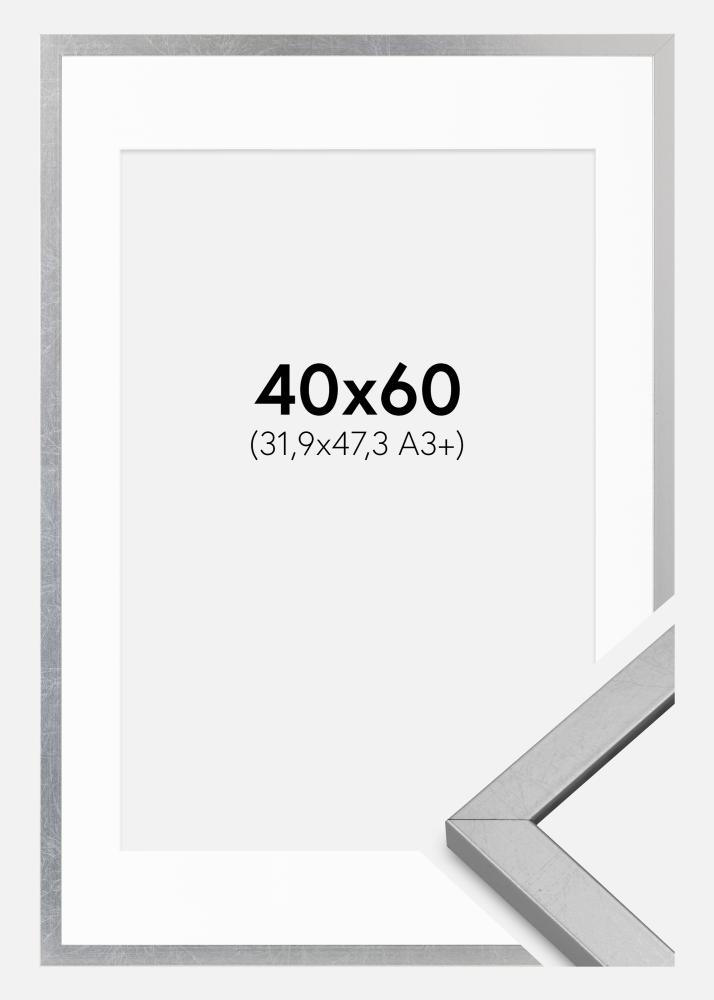 Cornice Minerva Argento 40x60 cm - passe-partout Bianco 32,9x48,3 cm