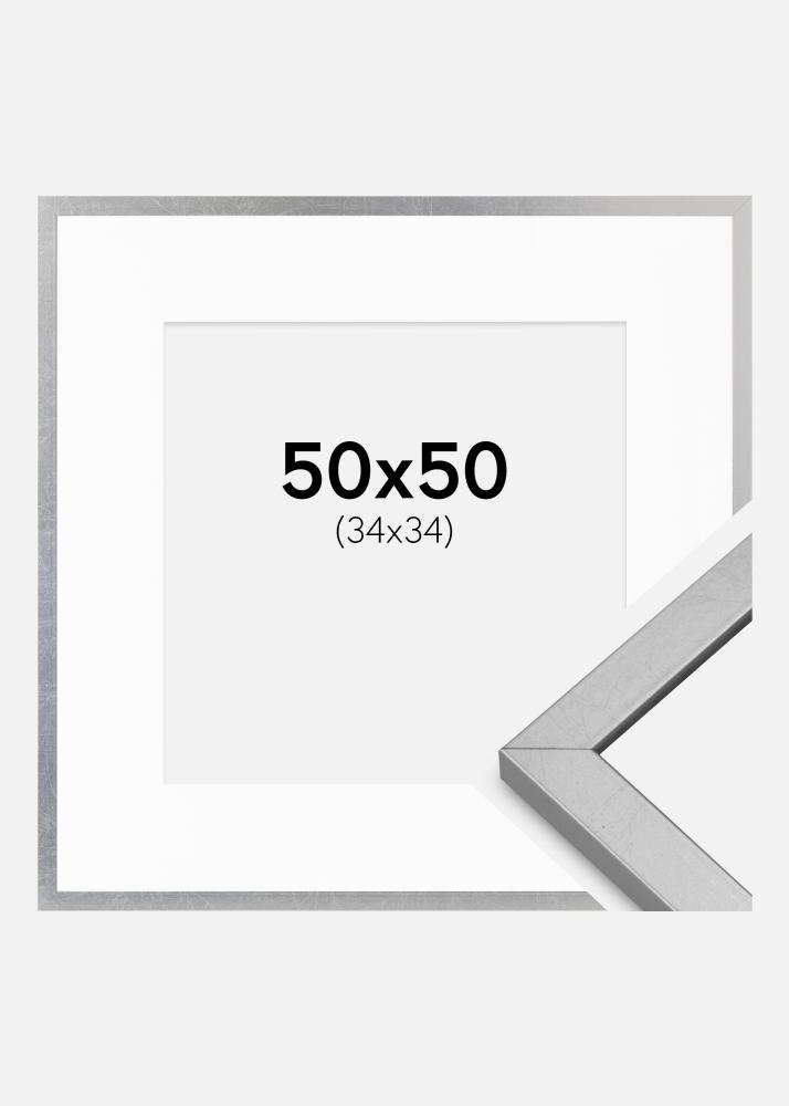 Cornice Minerva Argento 50x50 cm - passe-partout Bianco 35x35 cm