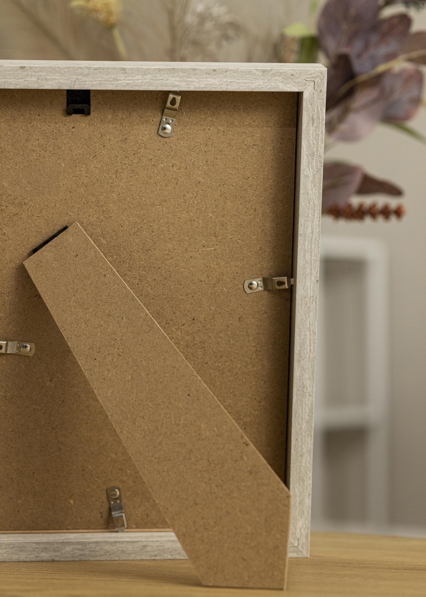 Questa cornice è realizzata in MDF, e ha una superficie grigia opaca con una bellissima struttura in legno. Il vetro della cornice è vetro. Le immagini e i passe-partout vengono montati dal retro della cornice. Basta girare le clip metalliche che tengono ferma la parte posteriore e poi inserire i tuoi soggetti.