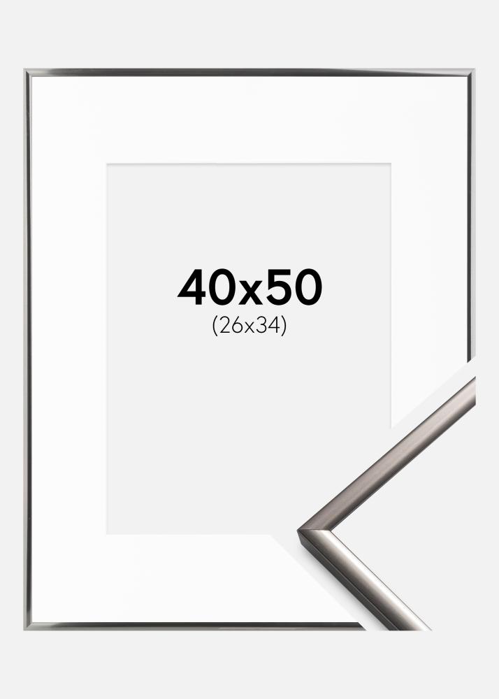 Cornice New Lifestyle Acciaio 40x50 cm - Passe-partout Bianco 27x35 cm