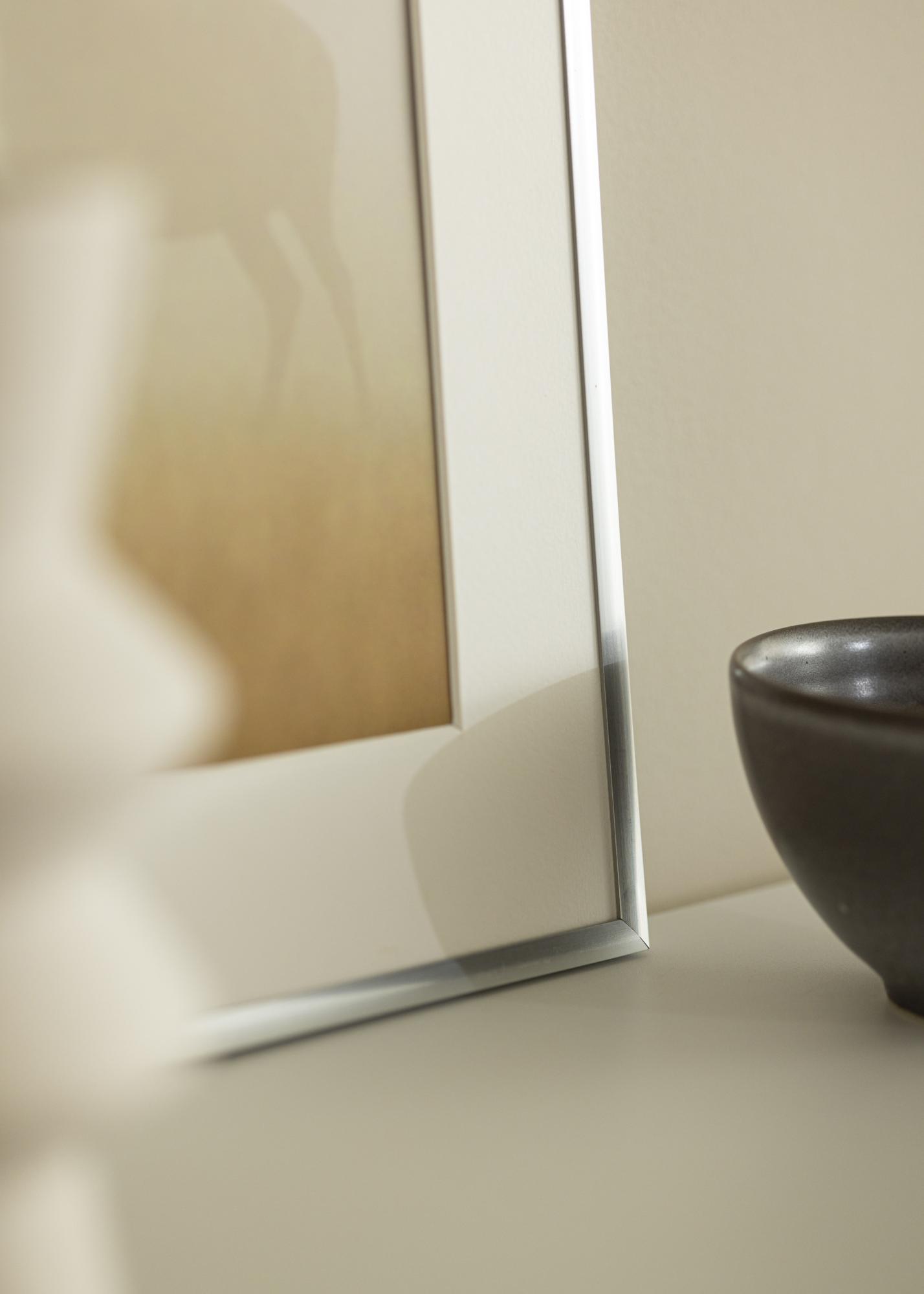 Trasforma le tue immagini in opere d'arte con la nostra elegante cornice color argento, completa di un raffinato passepartout bianco. Questa cornice è perfetta per mettere in risalto le tue immagini di 8x10 cm e dar loro un'incorniciatura sofisticata. Con una finitura opaca e una larghezza ridotta di 9 mm, questa cornice offre una sensazione moderna e minimalista che si adatta alla maggior parte degli stili di arredamento.