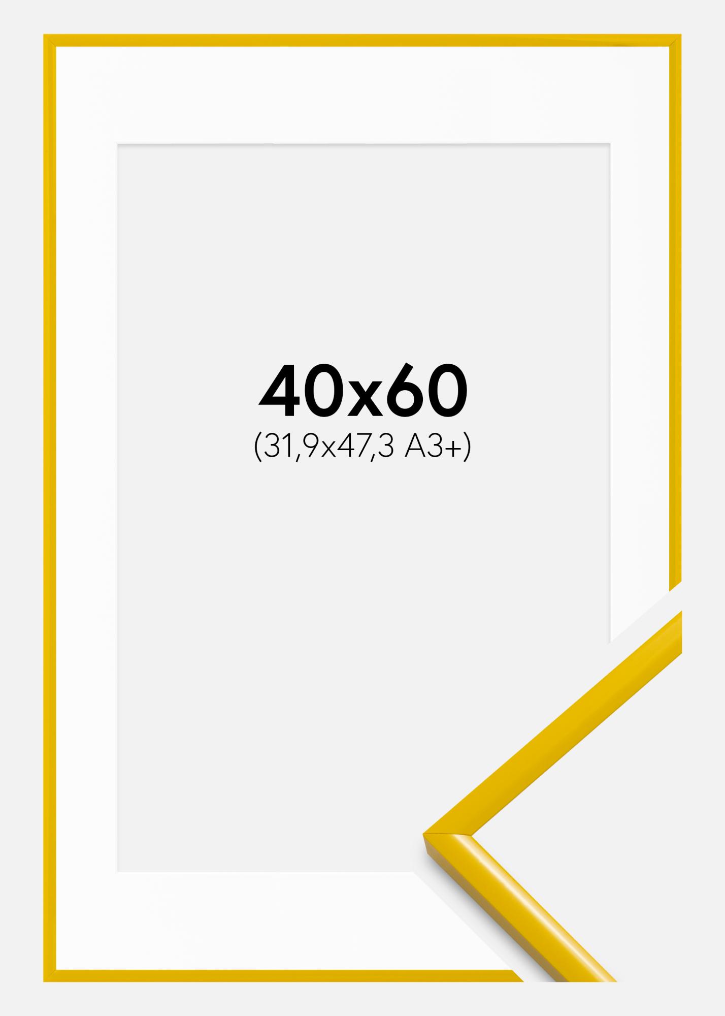 La cornice ha una larghezza stretta di 9,8 mm e una profondità di 16,5 mm, che conferisce una sensazione moderna e minimalista. La superficie lucida riflette la luce magnificamente e mette in risalto il colore giallo in modo sofisticato. Con dimensioni esterne di 41,1x61,1 cm, questa cornice diventa un dettaglio accattivante sulla tua parete.