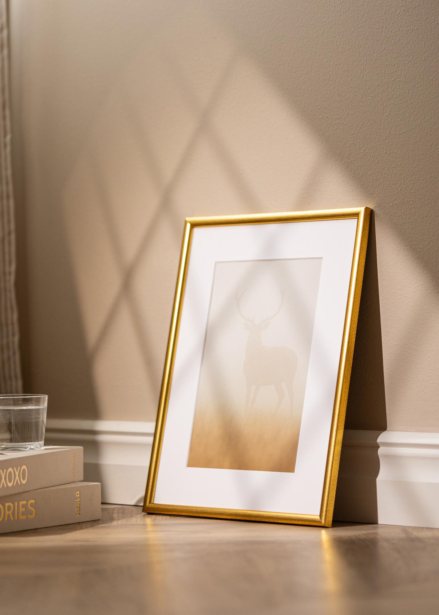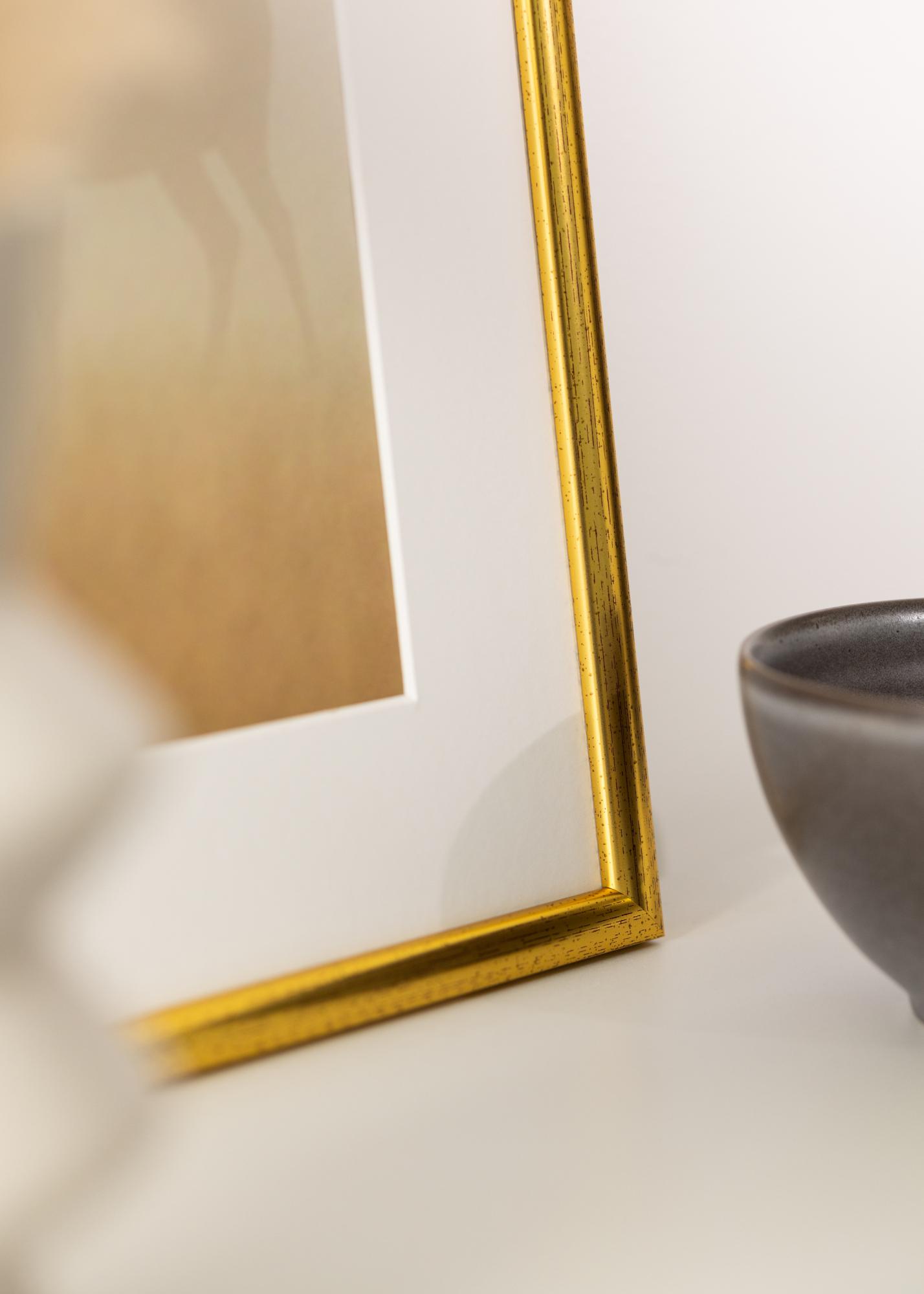 Newline Oro ha un profilo sottile (15 mm) che mette in risalto il soggetto nella cornice. La cornice ha un profilo dorato maculato di rosso che conferisce un aspetto antico.