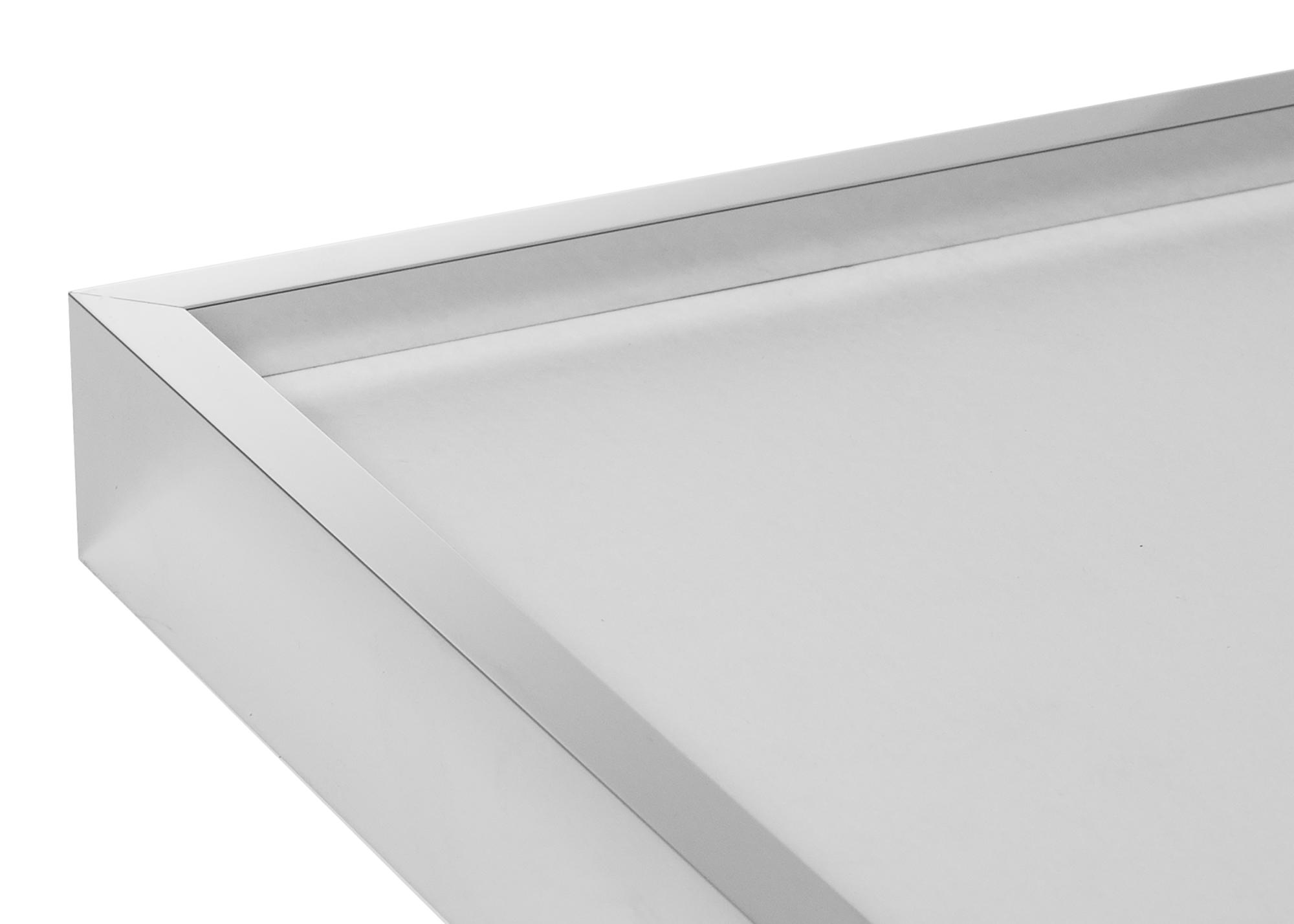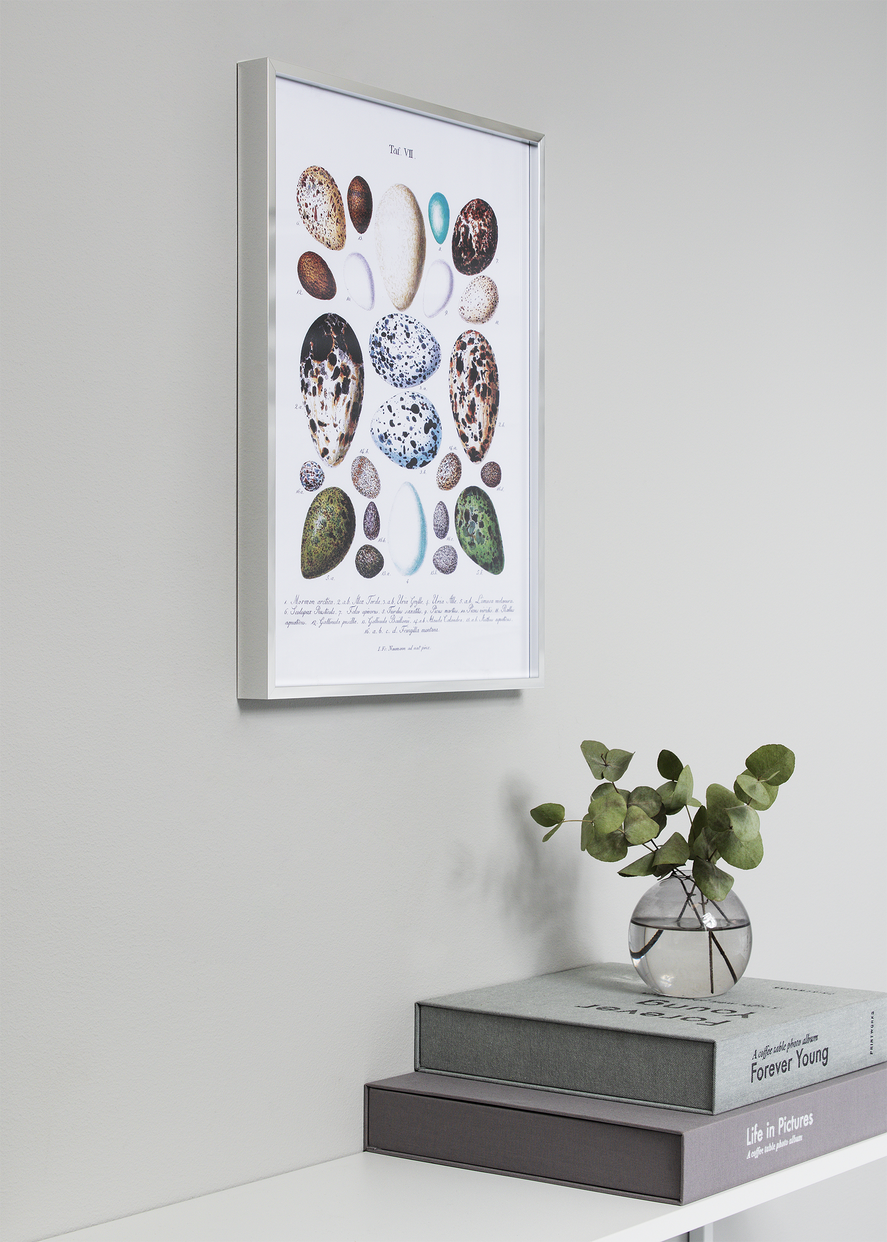 Cornice da parete in alluminio di alta qualità, di colore argento lucido e dal design minimalista. Prodotto in Germania, questa cornice si adatta perfettamente a un arredamento minimalista e il suo colore grigio chiaro si abbina bene sia a fotografie che a poster. La vasta gamma di dimensioni disponibili rende questa cornice perfetta per creare una composizione di quadri, tenendo insieme la collezione con l'aiuto della scelta della cornice.