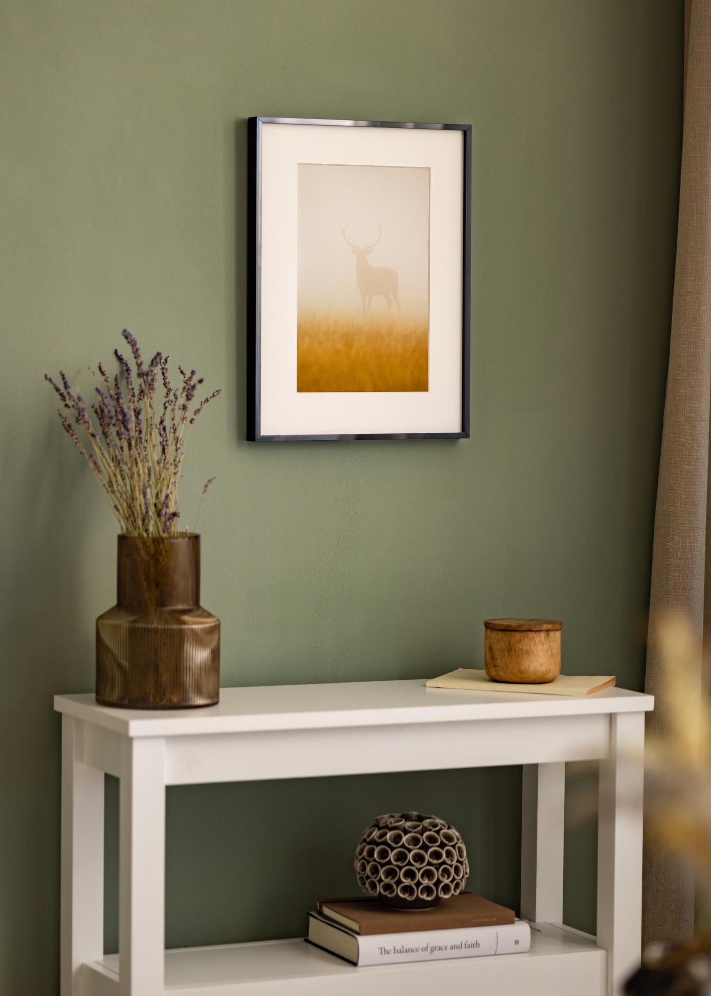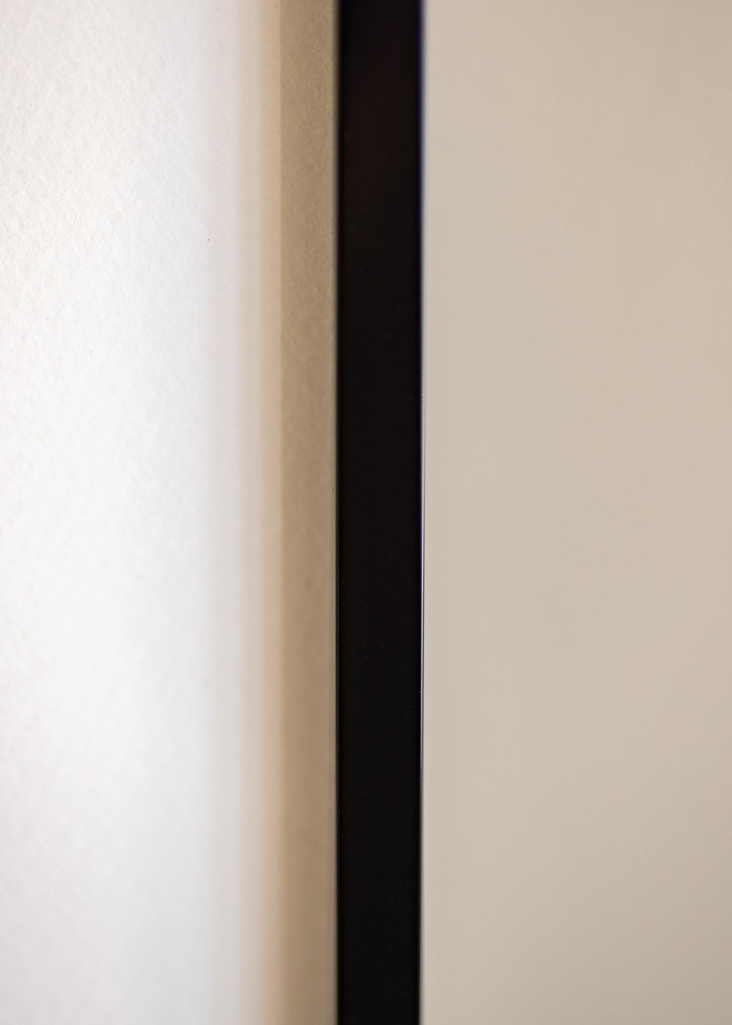 Elegante cornice premium con una sottile lista nera lucida che si adatta perfettamente a un interno moderno e minimalista. La superficie della cornice e il design snello e minimalista la rendono adatta per l'uso con poster grafici e fotografie in bianco e nero. La cornice è realizzata in alluminio e è disponibile in diverse dimensioni, il che la rende una buona scelta quando si desidera creare una parete di quadri con immagini di diversi formati unite dalla scelta della cornice.