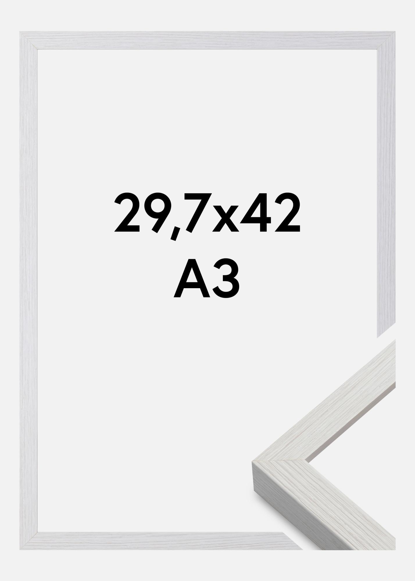 Cornice in legno bianco elegante di alta qualità con una sensazione di incisione laser in cui emerge la venatura del legno. La sottile cornice si adatta sia a uno stile d'arredamento moderno che a un ambiente rustico in cui si inserisce il colore bianco inciso. La cornice è ideale per l'utilizzo con poster, acquerelli e fotografie ed è disponibile in diverse dimensioni. Combina la cornice con diverse fotografie di formati diversi e appendile insieme per creare una bella parete di quadri che attira l'attenzione sulla parete.