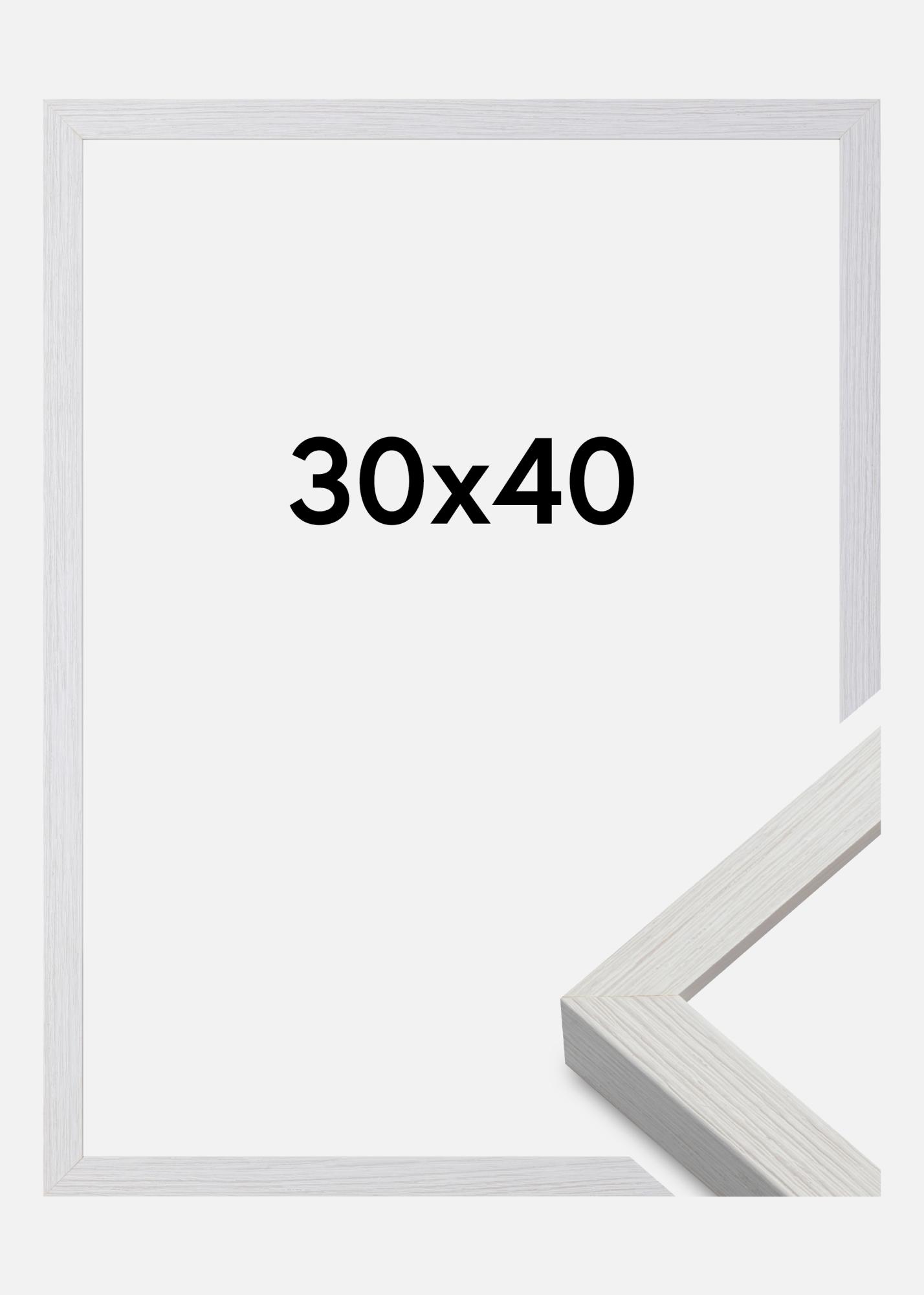 Cornice in legno bianco elegante di alta qualità con una sensazione di incisione laser in cui emerge la venatura del legno. La sottile cornice si adatta sia a uno stile d'arredamento moderno che a un ambiente rustico in cui si inserisce il colore bianco inciso. La cornice è ideale per l'utilizzo con poster, acquerelli e fotografie ed è disponibile in diverse dimensioni. Combina la cornice con diverse fotografie di formati diversi e appendile insieme per creare una bella parete di quadri che attira l'attenzione sulla parete.