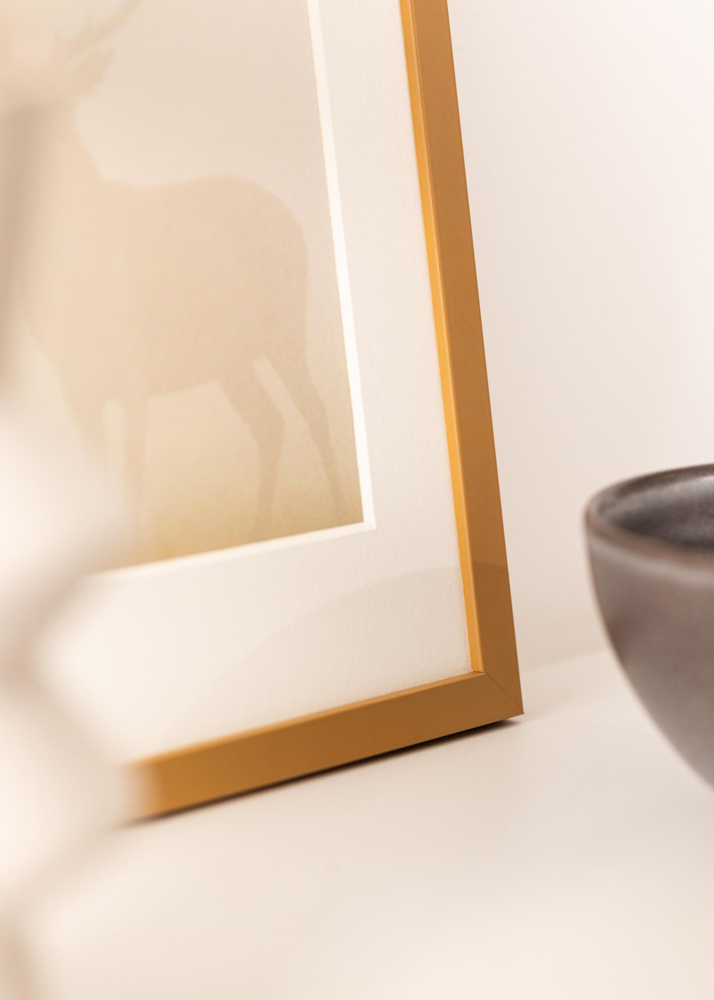 Una cornice elegante della danese Incado che fa parte della serie NordicLine. La cornice è realizzata in legno e ha un profilo quadrato pulito con una larghezza di listello di 15 mm e una profondità di listello delle stesse dimensioni. La superficie della cornice è rivestita con una tonalità opaca e sobria di giallo senape, che la rende un bellissimo ma discreto elemento di colore nella tua casa.