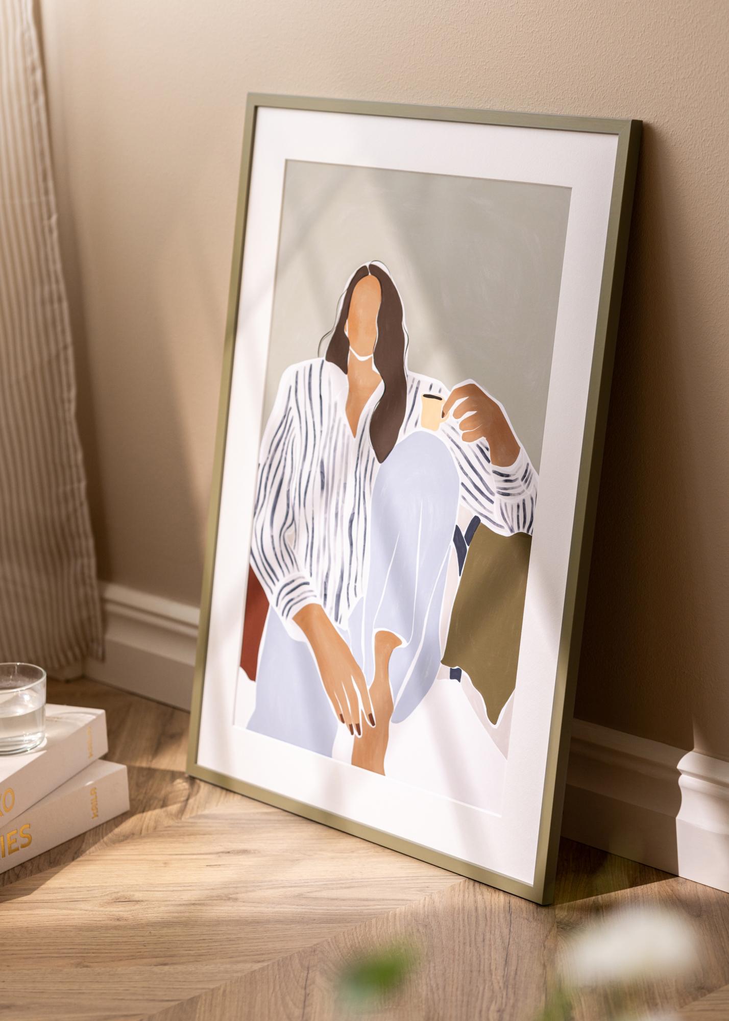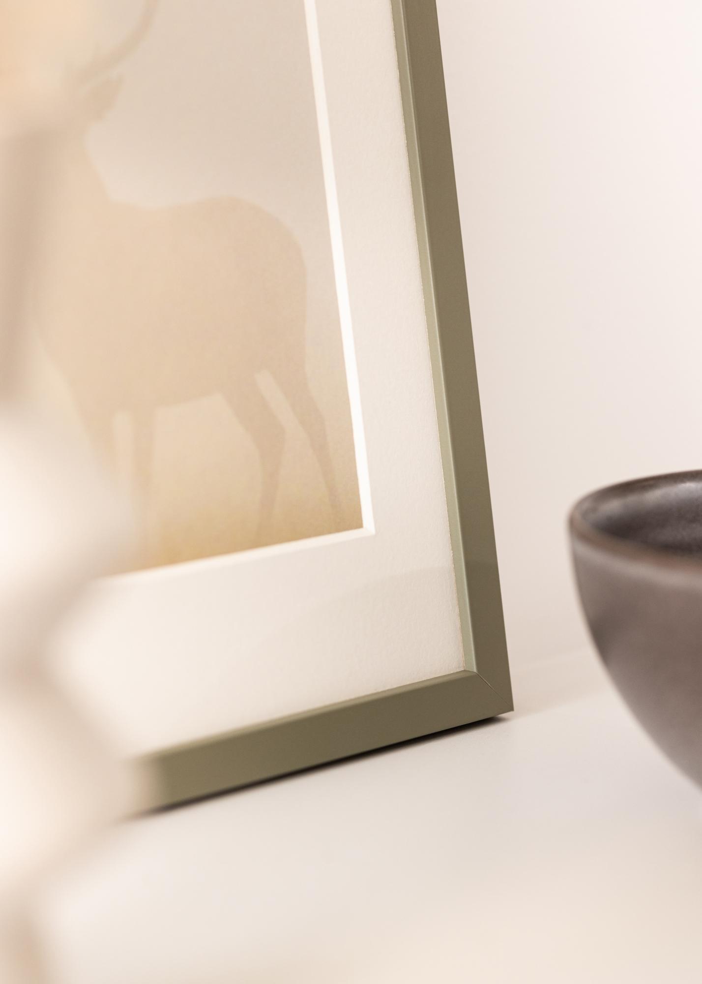 Questa elegante cornice proviene dalla compagnia danese Incado ed è parte della serie NordicLine. La cornice ha un profilo quadrato minimalista con una larghezza di listello di 15 mm e una profondità di listello delle stesse dimensioni. Ciò conferisce alla cornice una piacevole simmetria e una sensazione solida senza togliere l'aspetto slanciato. La cornice è rivestita con una finitura opaca in una tonalità verde naturale tranquilla e armoniosa.