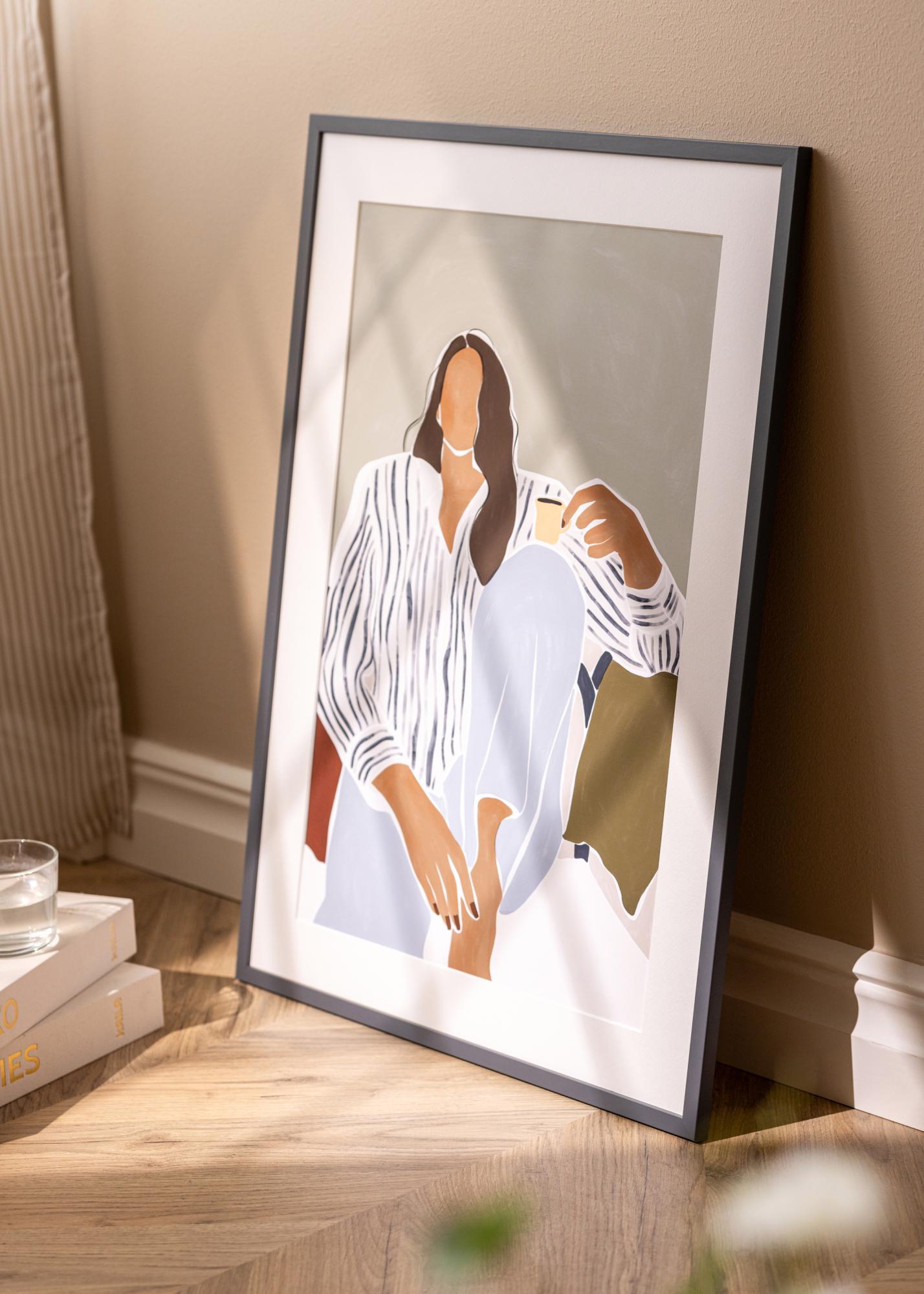 Una cornice elegante in legno proveniente dalla danese Incado e appartenente alla serie NordicLine. La cornice ha un profilo pulito e quadrato con una larghezza di listello di 15 mm e una profondità di listello che misura anche 15 mm. La cornice ha una finitura opaca laminata in una tonalità di grigio scuro elegante che si armonizza facilmente con gli altri schemi di colore nella tua casa.