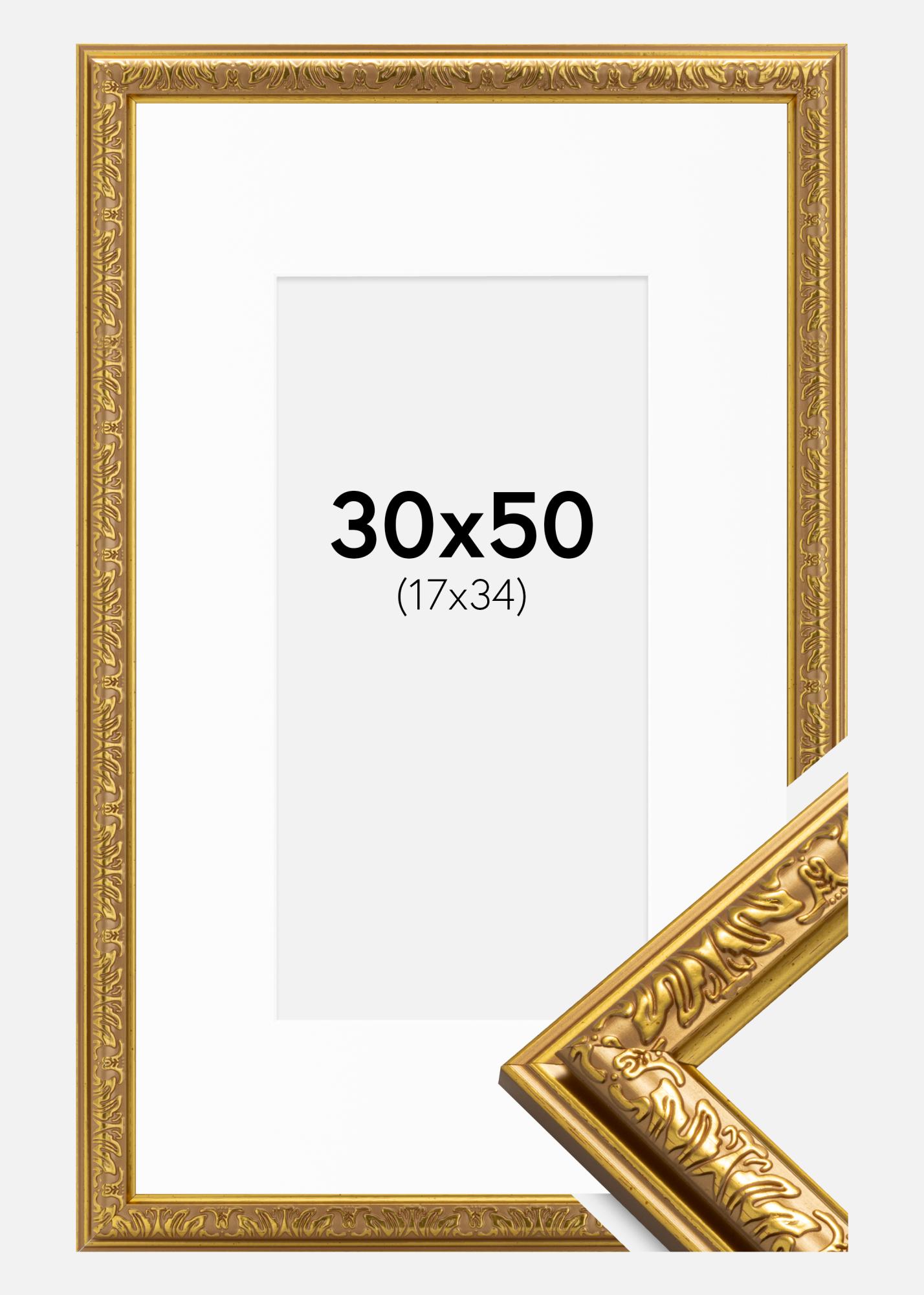 Cornice Nostalgia Oro 30x50 cm - Passe-partout Bianco 18x35 cm