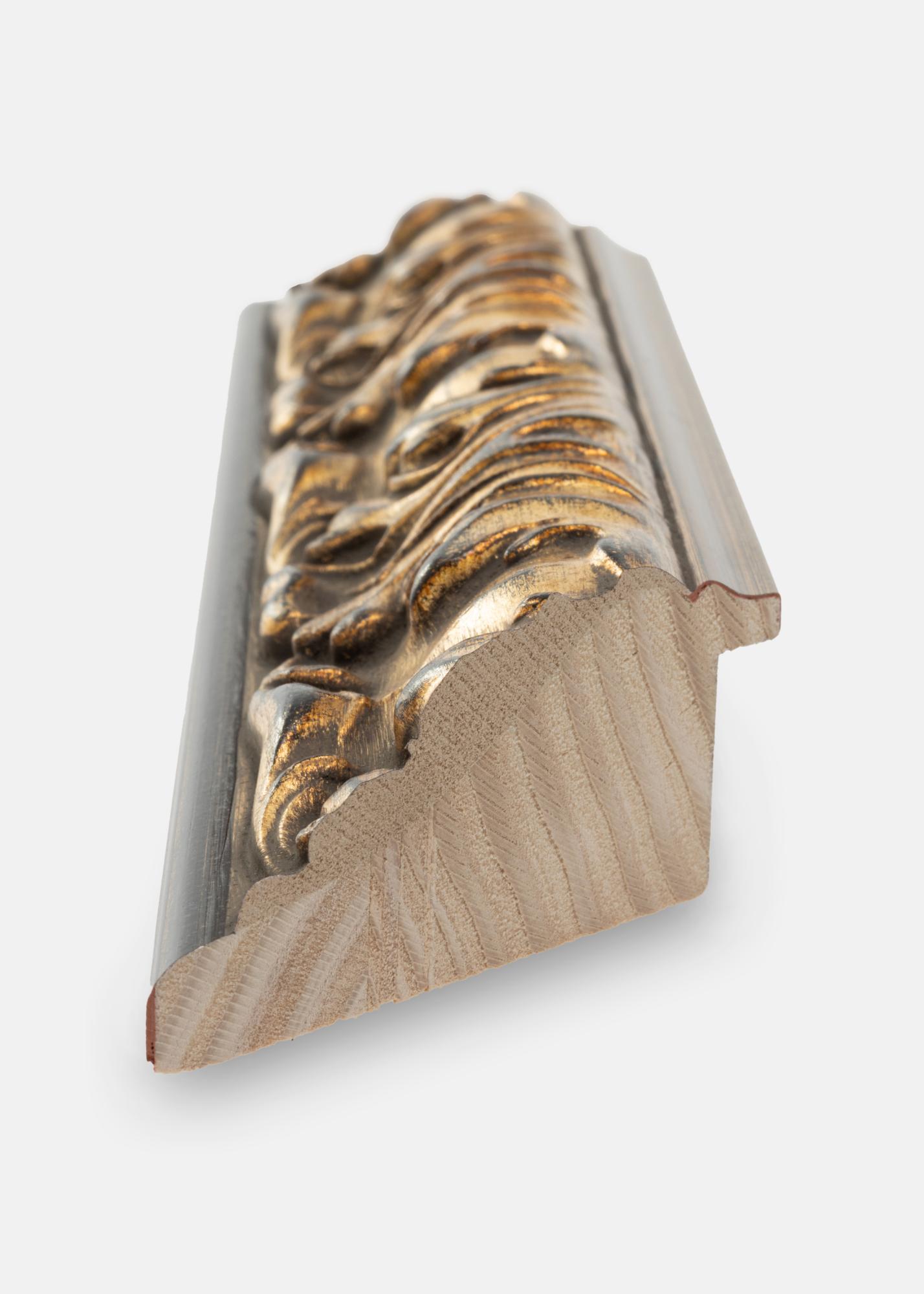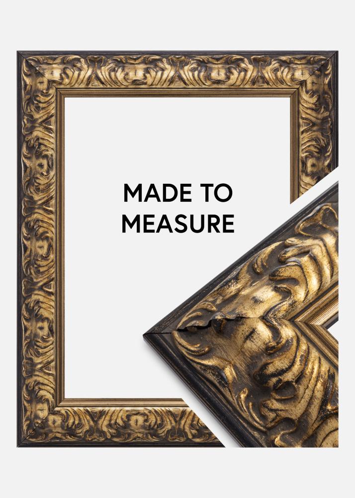 La nostra cornice su misura Odin in oro e nero è la scelta perfetta per chi cerca un'intelaiatura elegante e classica. Con la sua finitura dorata e dettagli neri, questa cornice fotografica offre una sensazione antica che esalta ogni opera d'arte o fotografia. Il design ornamentato crea un bel contrasto tra il caldo oro e i profondi dettagli neri, conferendo un aspetto elegante e tradizionale.