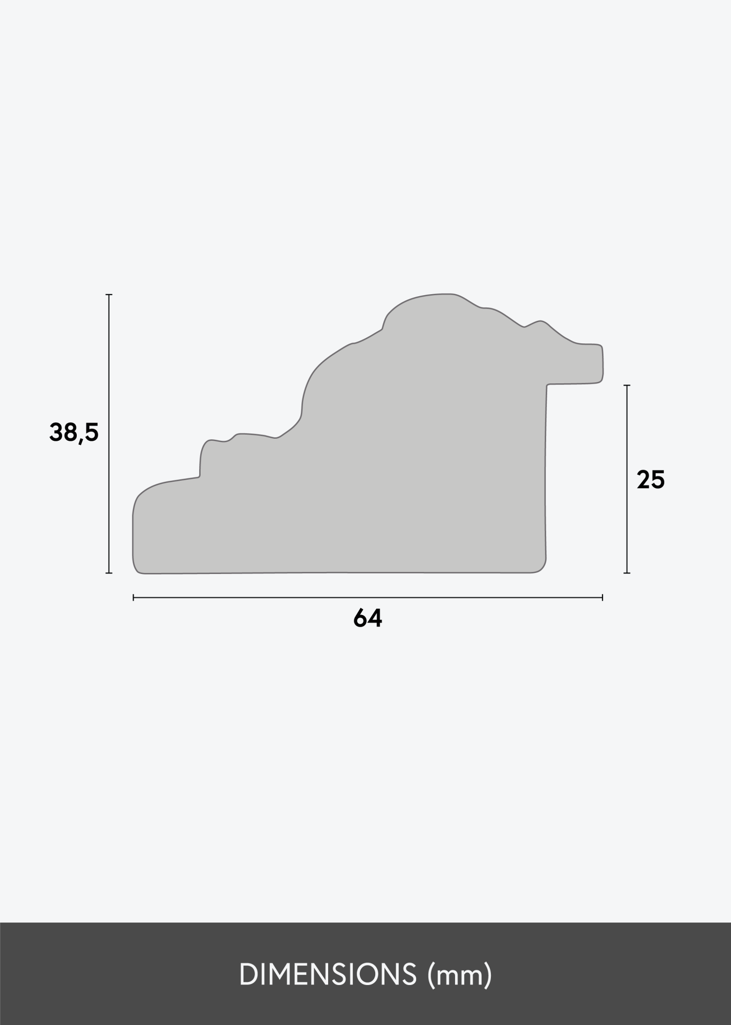La cornice ha una lista larga di 64 mm e una profondità di 38,5 mm, rendendola sia robusta che accattivante. Realizzata in pino, questa cornice per quadri è sia durevole che di alta qualità. Poiché produciamo la cornice nel nostro laboratorio, puoi essere sicuro che ogni dettaglio è pensato con attenzione per dare al tuo salotto o ufficio un tocco sofisticato.