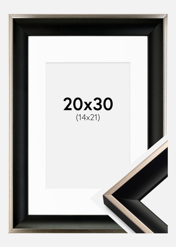 Cornice Öjaren Nero-argento 20x30 cm - Passe-partout Bianco 15x22 cm