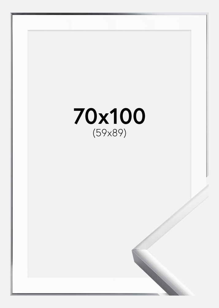 Cornice Poster Frame Aluminum Argento 70x100 cm - Passe-partout Bianco 60x90 cm