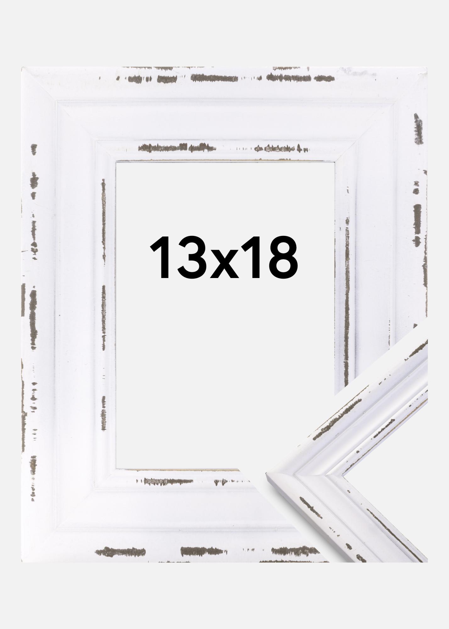 Se non si ha la fortuna di ereditare vecchie fotografie di famiglia incorniciate, bisogna creare questi quadri da soli. Qui abbiamo una cornice decorativa e consumata che si adatta perfettamente allo scopo! La cornice è bianca con un profilo classico e parti scrostate in cui si vede il legno. Scegli tra diverse dimensioni!
