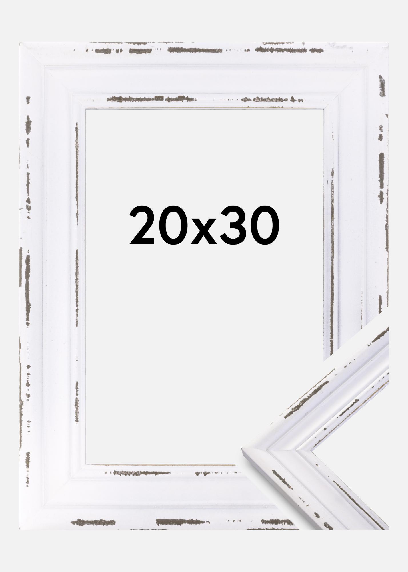 Se non si ha la fortuna di ereditare vecchie fotografie di famiglia incorniciate, bisogna creare questi quadri da soli. Qui abbiamo una cornice decorativa e consumata che si adatta perfettamente allo scopo! La cornice è bianca con un profilo classico e parti scrostate in cui si vede il legno. Scegli tra diverse dimensioni!