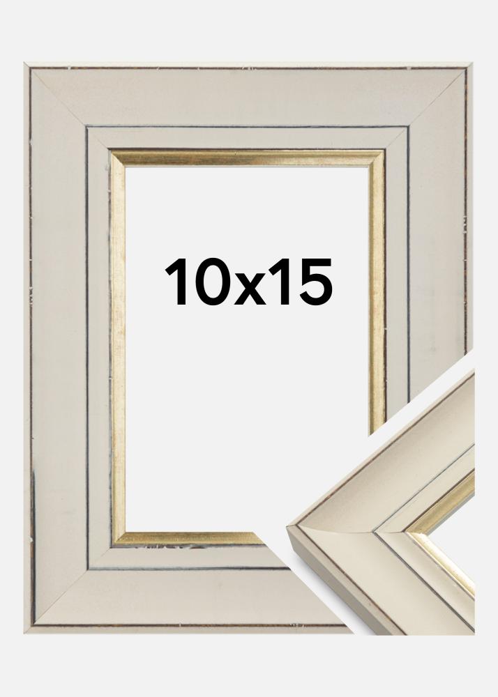cornice in stile classico con una suggestiva atmosfera retrò. La cornice ha un profilo consumato in bianco con un elegante bordo dorato vicino all'immagine, grazie al suo design neutro e alla scelta dei colori, questa è una cornice adatta a quasi tutti gli ambienti e a tutti i tipi di immagini.