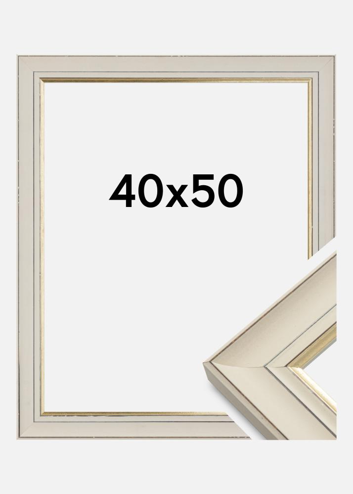 cornice in stile classico con una suggestiva atmosfera retrò. La cornice ha un profilo consumato in bianco con un elegante bordo dorato vicino all'immagine, grazie al suo design neutro e alla scelta dei colori, questa è una cornice adatta a quasi tutti gli ambienti e a tutti i tipi di immagini.