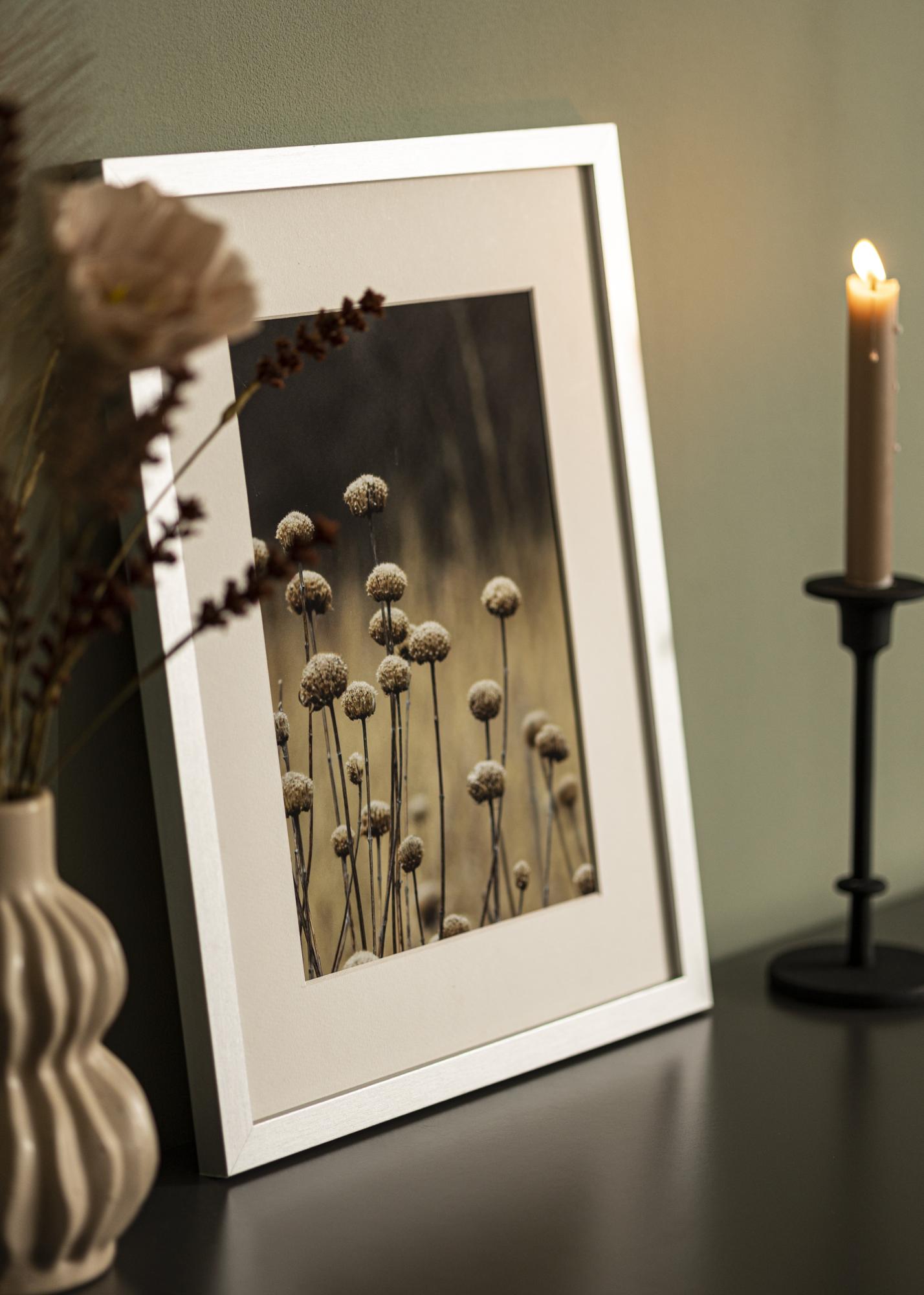 Confezione che include cornice e passepartout bianco coordinato. Nell'immagine del prodotto puoi vedere le dimensioni della cornice (in grassetto) e la misura interna del passepartout (tra parentesi). Ricorda che la misura interna del passepartout deve risultare sempre 1 cm più piccola rispetto alle dimensioni dell'immagine desiderata.