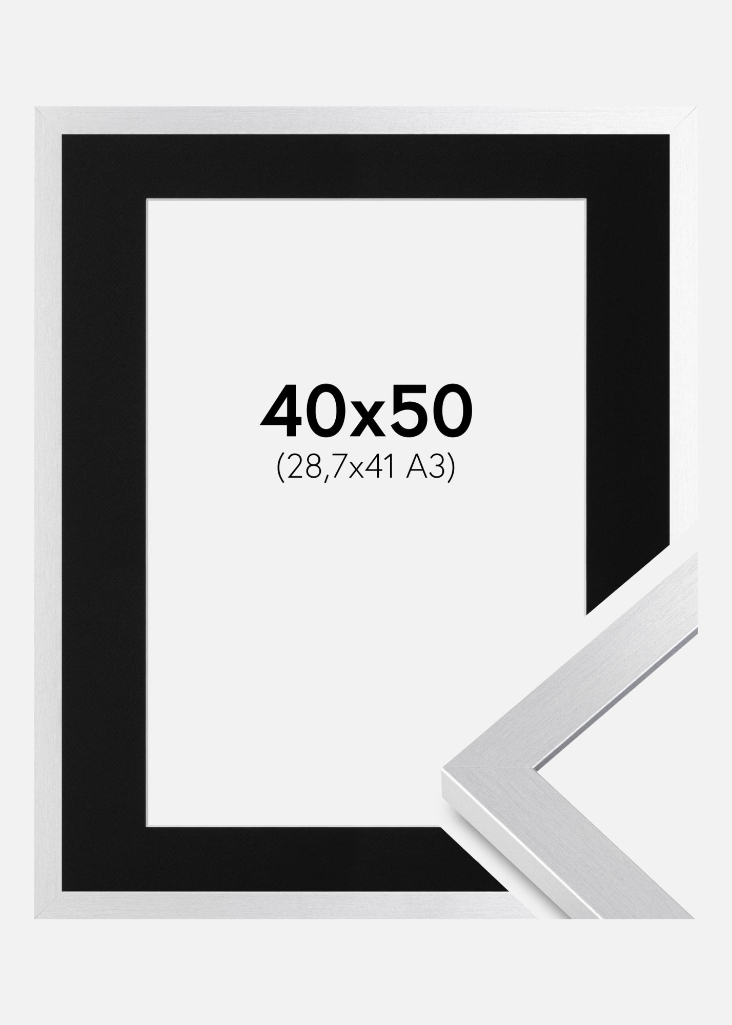 Cornice Selection Argento 40x50 cm - Passe-partout Nero 29,7x42 cm (A3)