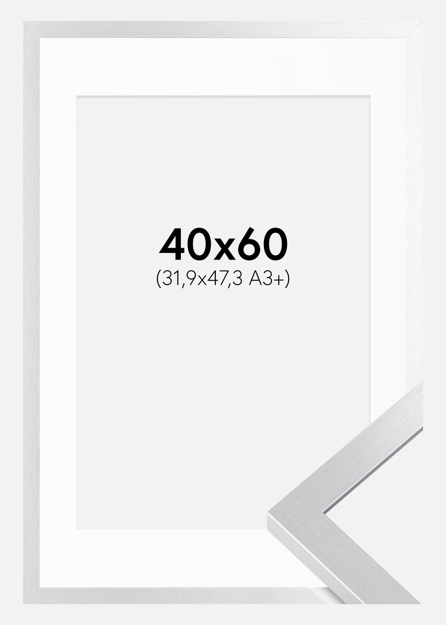 Cornice Selection Argento 40x60 cm - Passe-partout Bianco 32,9x48,3 cm (A3+)