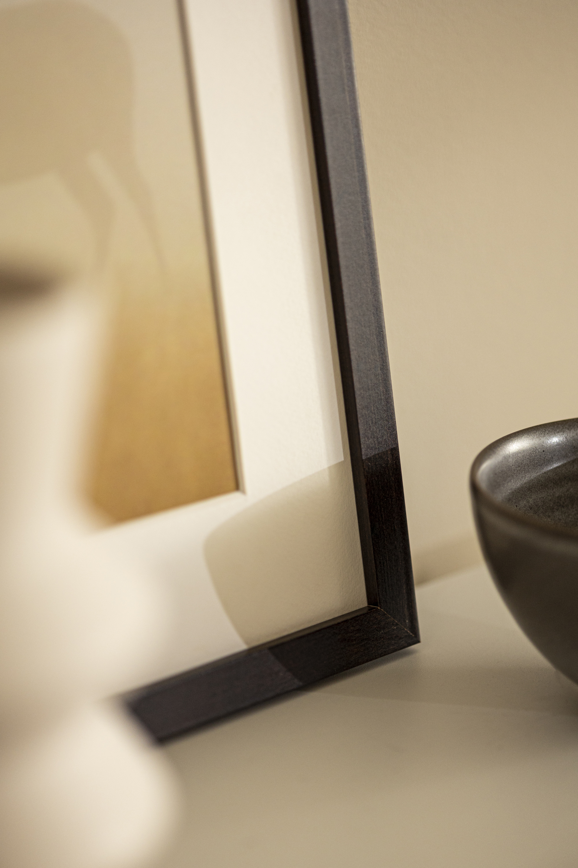 Questa è una cornice di noce, che è un tipo di legno leggermente più scuro il cui colore si abbina bene ad esempio a fotografie in bianco e nero o immagini con motivi naturali. Se hai anche mobili o altri dettagli d'arredo in legno di noce nella tua casa, questa cornice si adatterà perfettamente!